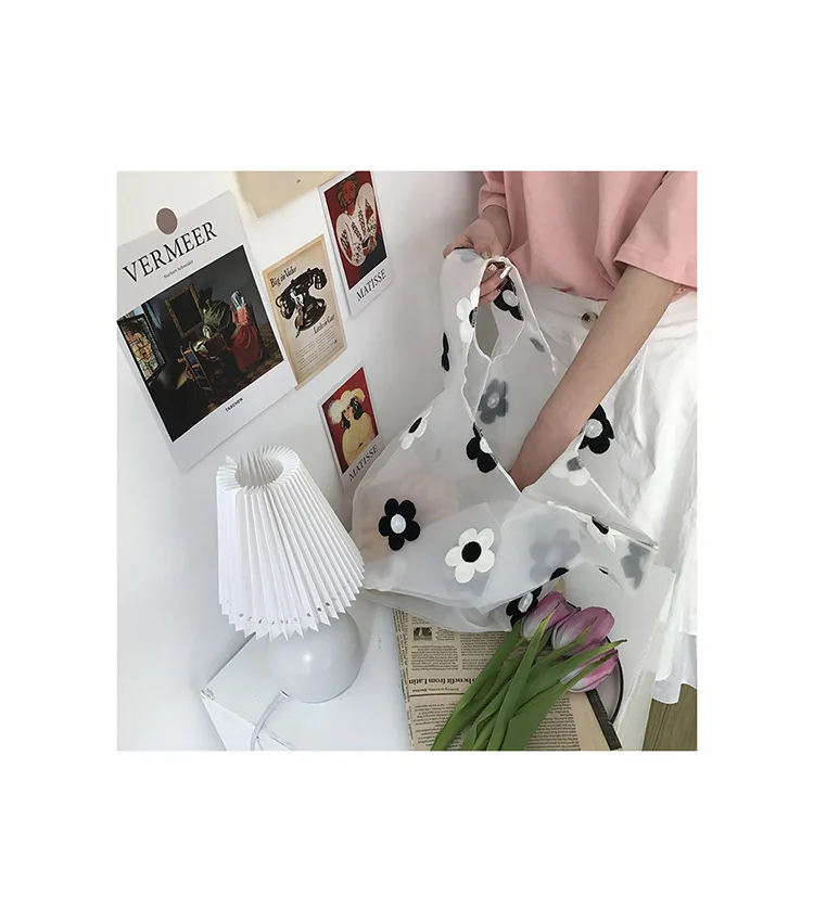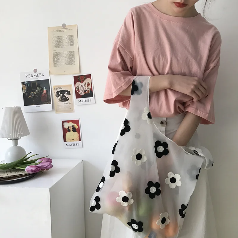Женская прозрачная сумка-тоут из двойной органзы, тканевые сумки с вышитыми цветами, экологически чистая Сумочка для покупок, кошельки для девушек