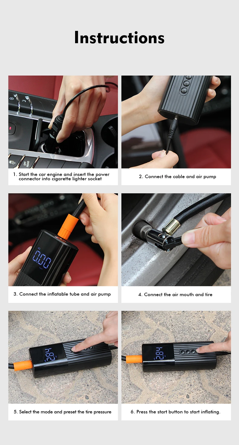 Надувной насос, воздушный компрессор, насос для накачивания шин, портативный воздушный компрессор, воздушный насос для автомобиля, велосипеда