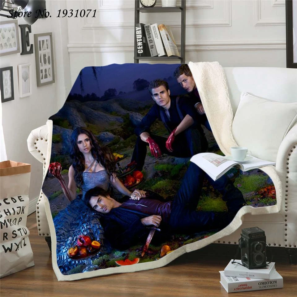 Новое Флисовое одеяло с 3D принтом дневников вампира для кровати толстое одеяло модное покрывало шерпа одеяло для взрослых детей 07
