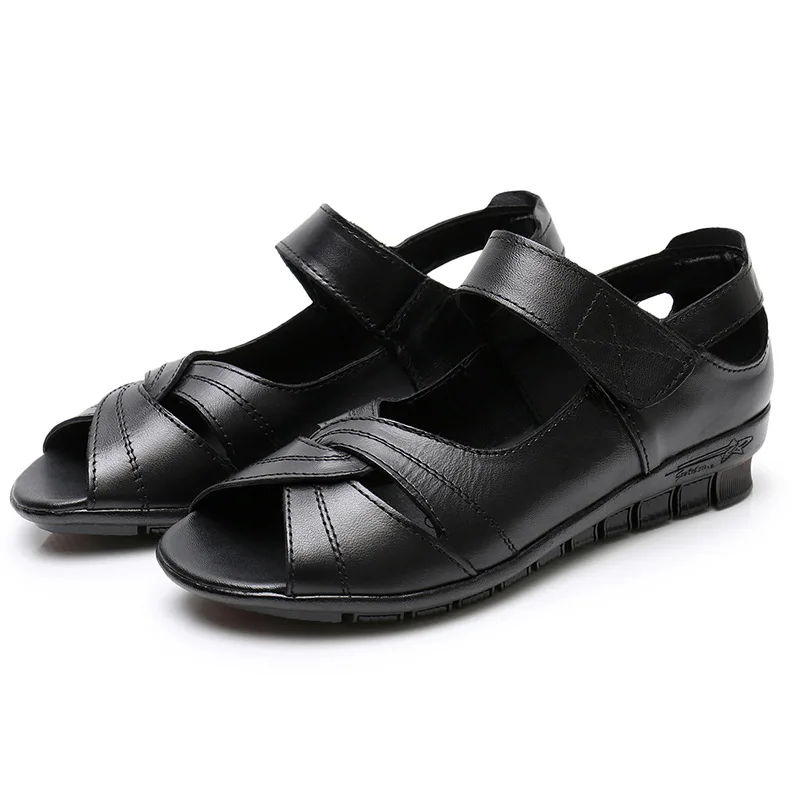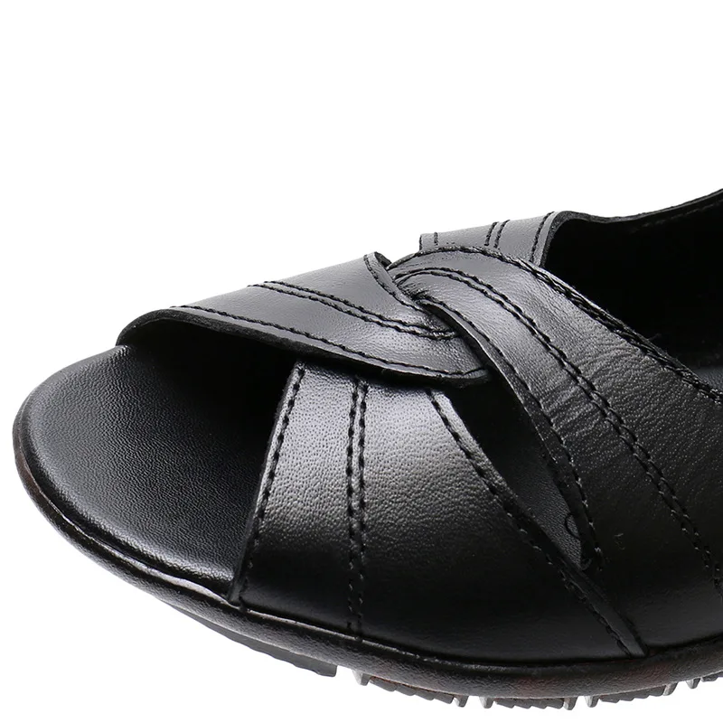 OUKAHUIлетние женские Босоножки с открытым носком; женские босоножки из натуральной кожи на низком каблуке 4 см с открытым носком; летние туфли без застежки