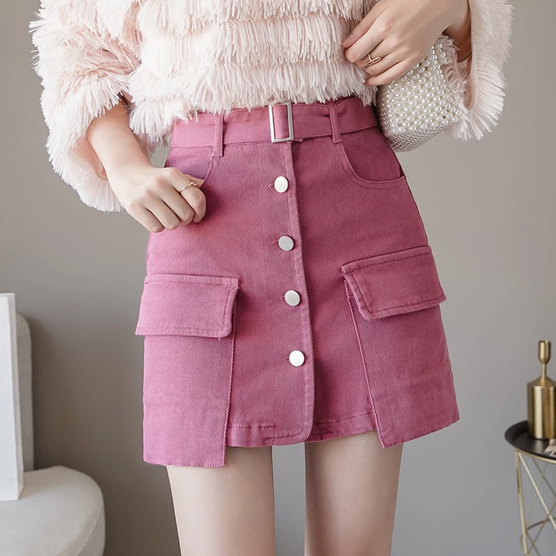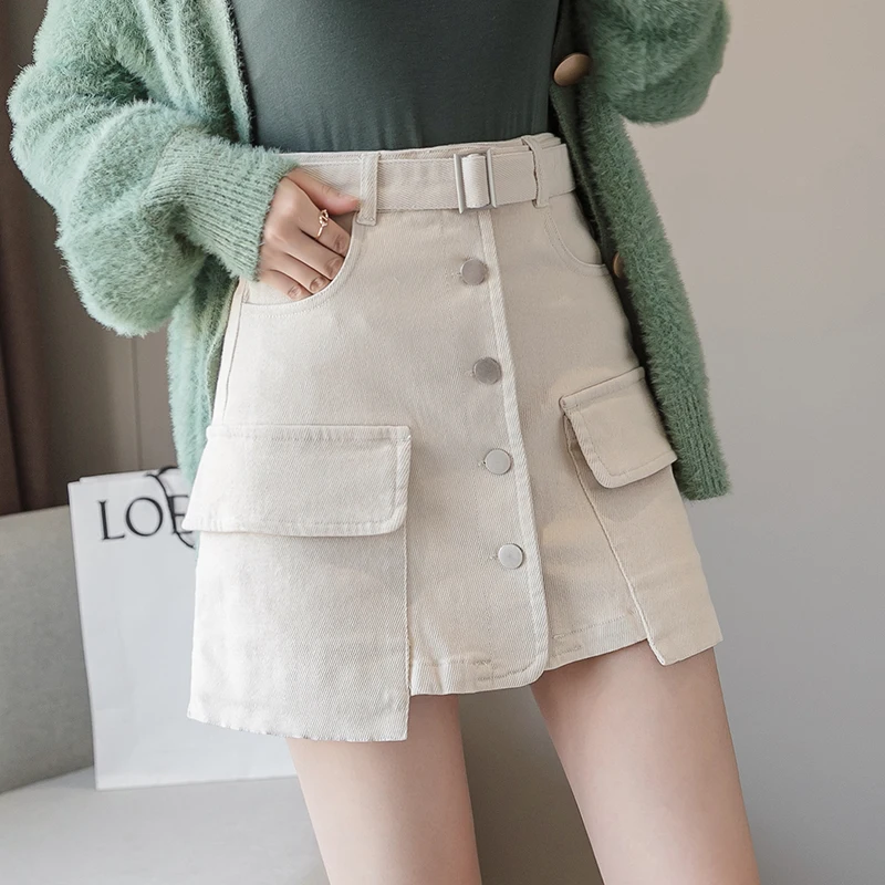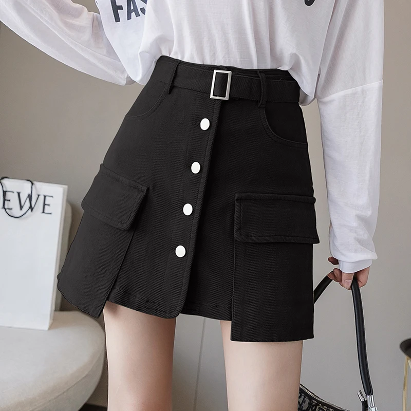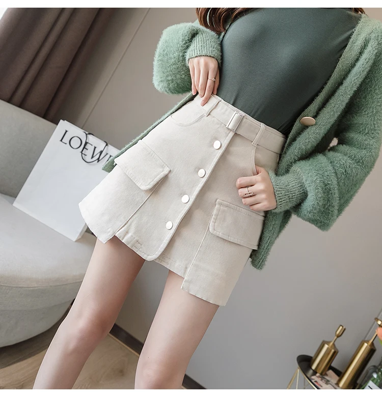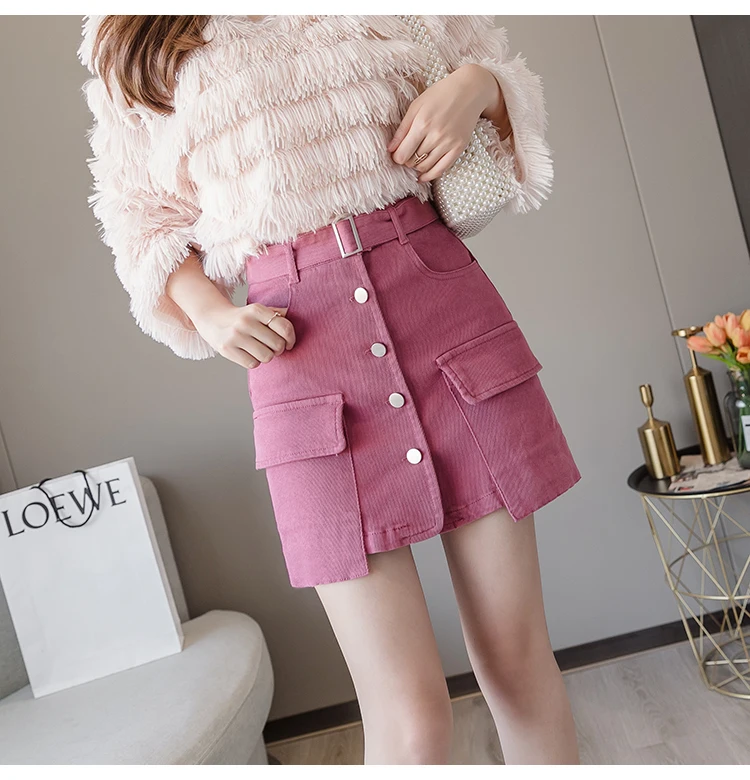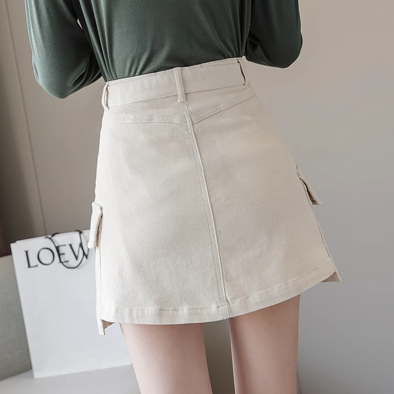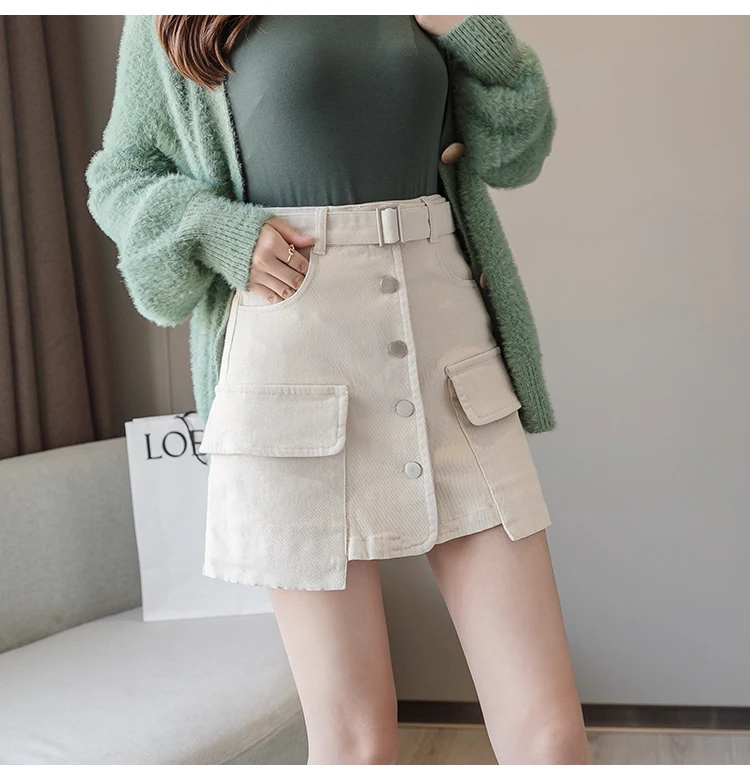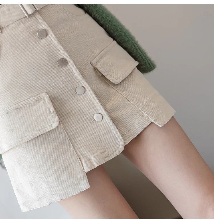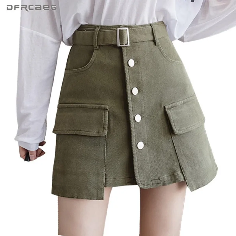Сафари Стиль летние женские трапециевидные юбки с ремнем 2020 Высокая Талия Повседневное карманные грузовые короткая юбка Женский Saia Армейский зеленый