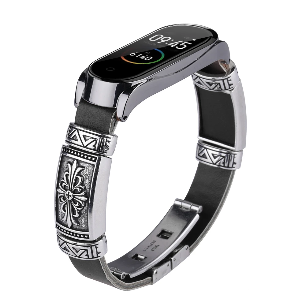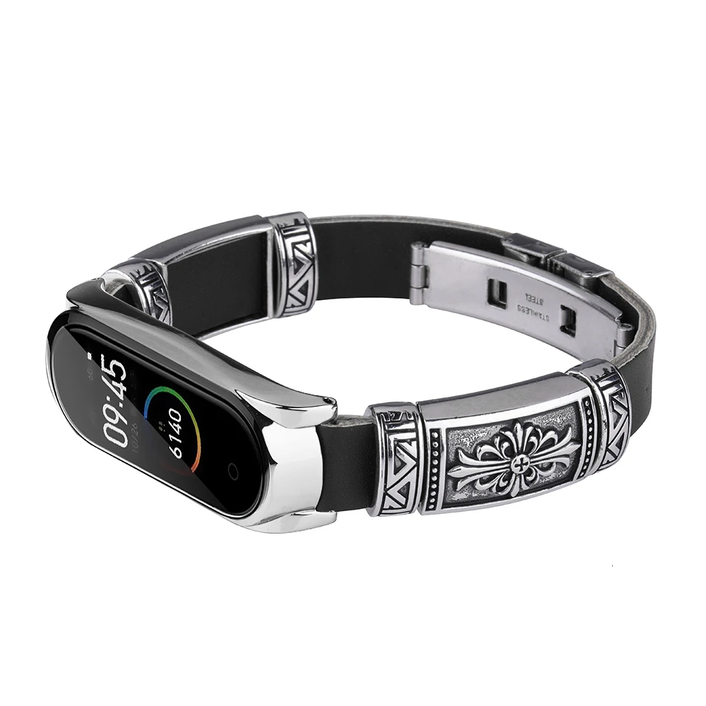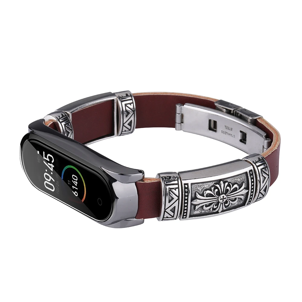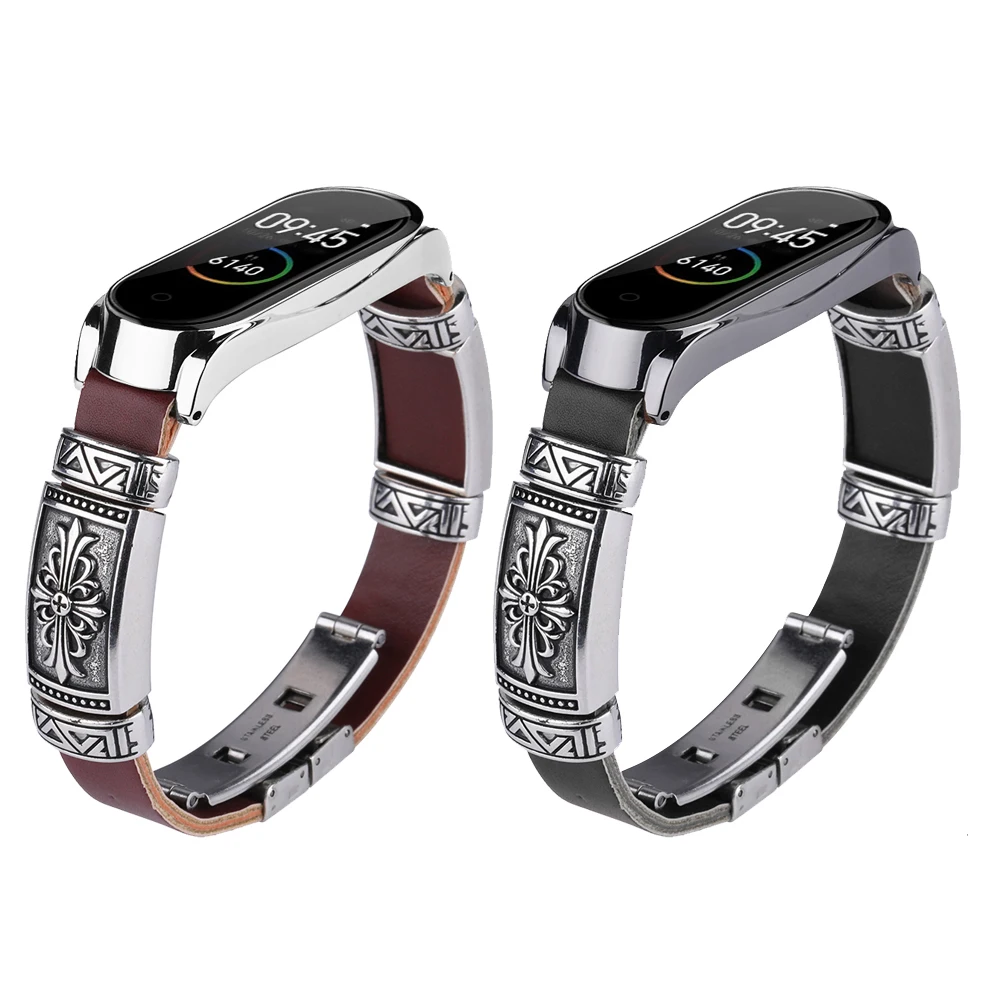Оригинальный ретро браслет из натуральной кожи для часов Mi Band 4, браслет для часов Xiaomi Mi Band 3, винтажные гравировочные металлические браслеты