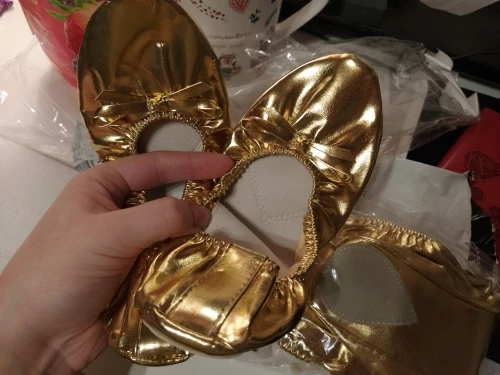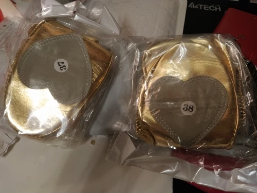 Жалко, что немного маломерят, но я сама возможно виновата. Нога у меня шире, чем у ребенка, а эти танцевальные тапочки для детей. В остальном - красивые, блестящие, на ноге смотрятся хорошо