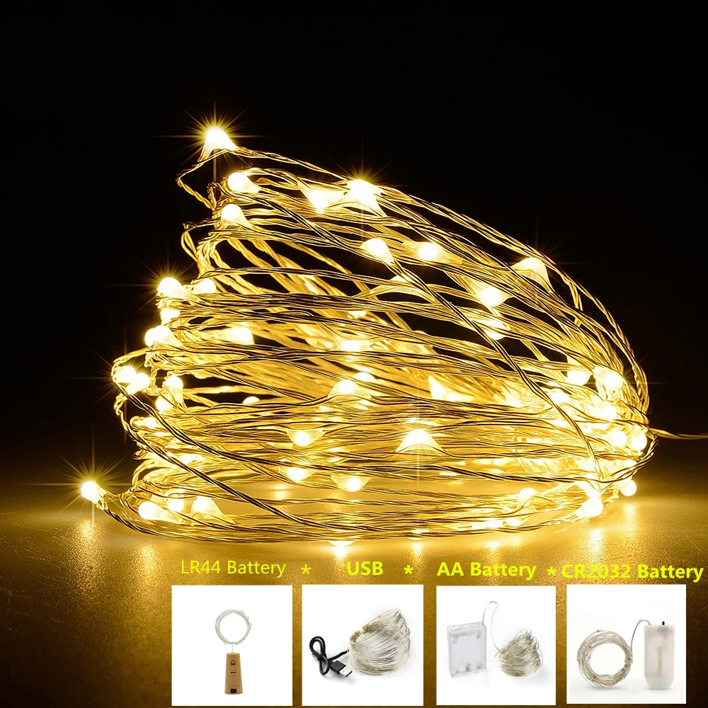 1 момме/25 м/10 м USB LED струнный светильник s Сказочный светильник s Наружный Крытый на батарейках гирлянда Рождественское украшение для дома вечерние свадебные Рождественский Подарок Медный/Серебряный провод водонепроницаемый светодиодный светильникГирлянда лампа