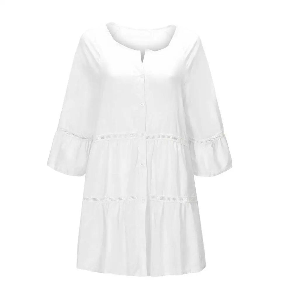 Женское ажурное платье, из хлопка и льна, свободное асимметричное п...