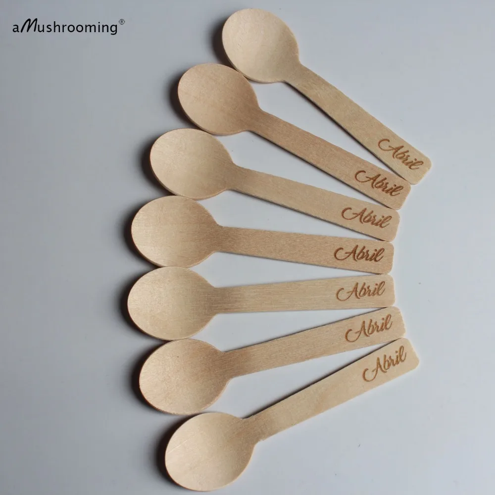 Искусственные деревянные одноразовые ложки, деревенские свадебные, для дня рождения, десертные кофейные ложки для мороженого, могут быть персонализированы