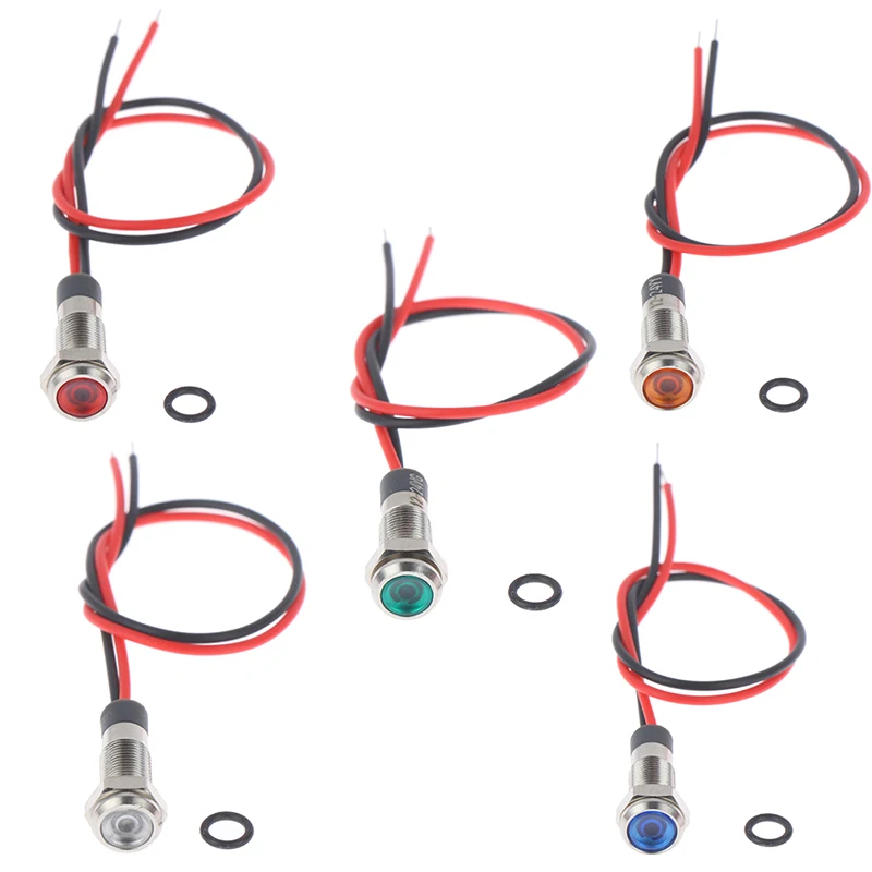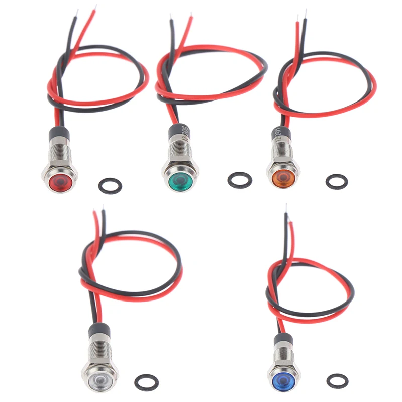 IP67 Водонепроницаемый светодиодный металлический предупреждающий индикатор 6 мм пилот, сигнальный огонь 3В-6В12-24В220В красный желтый синий зеленый белый