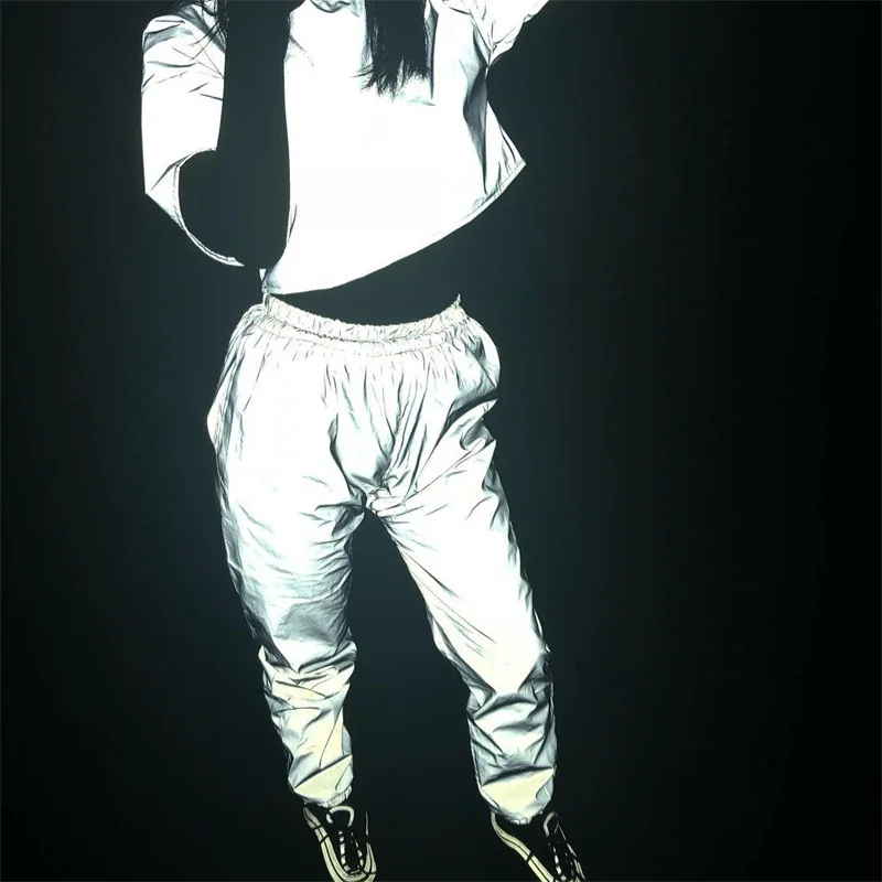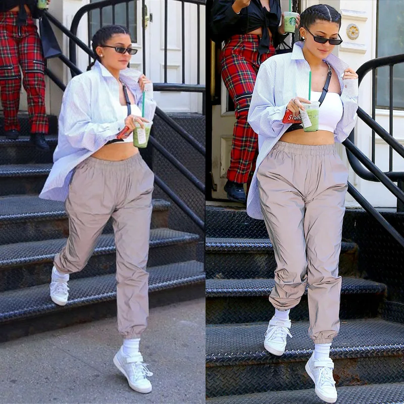Брюки женские светоотражающие с завышенной талией, модные длинные с...