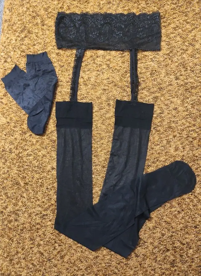 неплохие чулки, без трусов, хороший капрон, примерно 20 ден, размер как 3ка русская, одевать не очень удобно, в подарок ещё дали носочки, спасибо