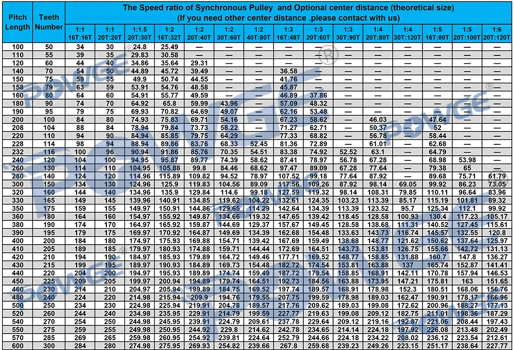 Если вам нужен другой размер центрального расстояния, пожалуйста, свяжитесь с намиС нами по любым вопросам.Мы поможем вам рассчитать правильный размер ремня.