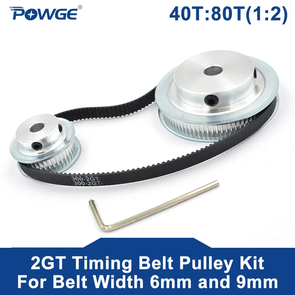 POWGE GT2/2GT синхронный шкив ремня 40 зубьев и 80 зубьев набор коэффициента скорости40T:80T (1:2)Для ширины ремня 6 мм и 9 мм(40 зубцов 2GT шкив отверстия 5/6/6.35/8 мм и 80 зубы 2GT шкив Диаметр 5/6/6.35/8/10/12/14/15/16/17/19/20 мм)300-2GT-6 ширина 6 мм или 300-2 гT-9 ширина 9 мм закрытые ремни снижение скорости коэффициент ГРМ шкив комплект