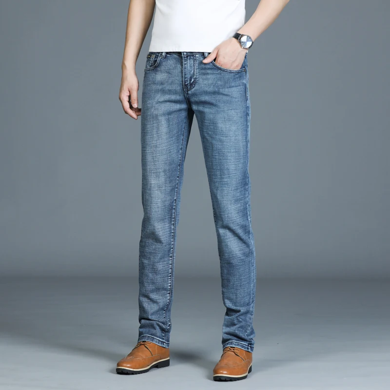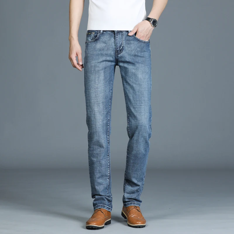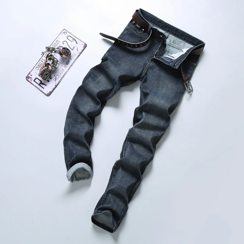 Джинсы мужские прямые стрейчевые, модные брюки из денима стрейч, классические, цвет серый, большие размеры 28-40, весна-осень 2020