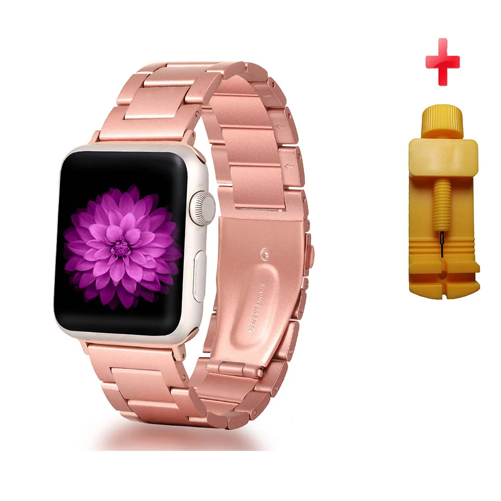 Ремешок из нержавеющей стали для Apple Watch 7 4145 мм, браслет для Apple Watch 1 2 3 4 5 6 38424044 мм, розовое золото, розовый