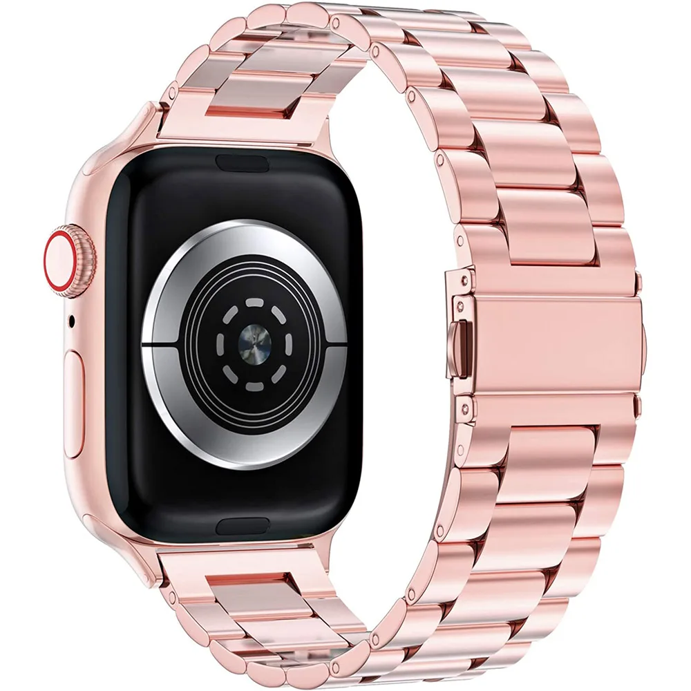 Нержавеющая сталь ремешок совместим наручных часов Apple Watch 38/40/41 мм серии 7/SE/6/5/4/3/2/1 для наручных часов Apple Watch 42/44/45 мм цвета розового золота розового цвета