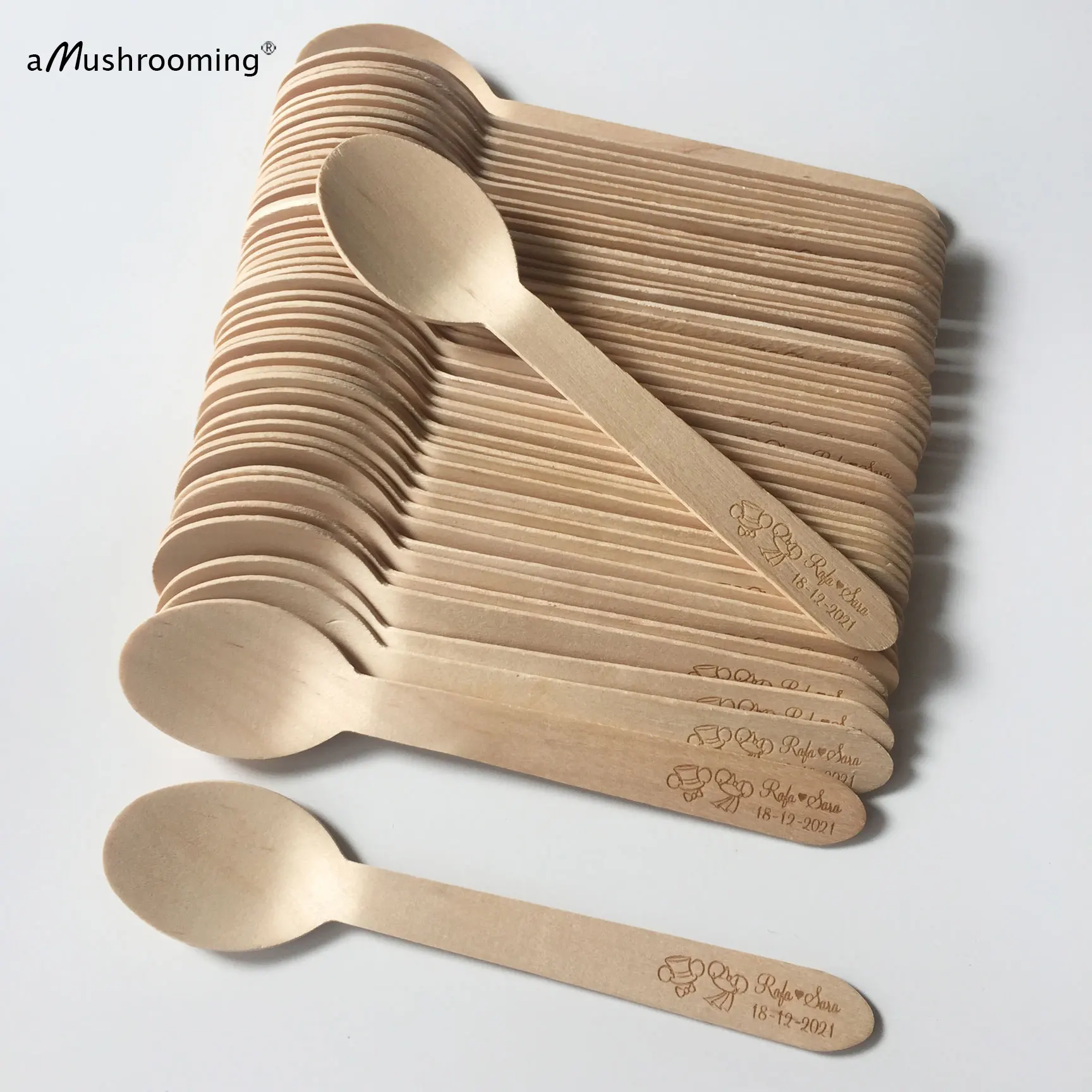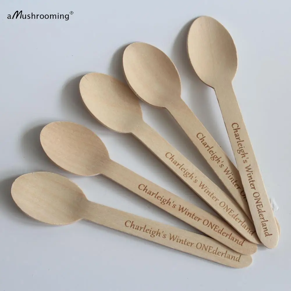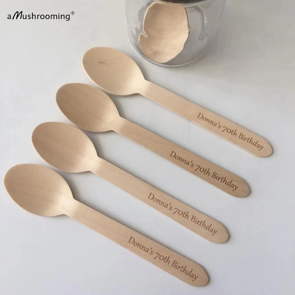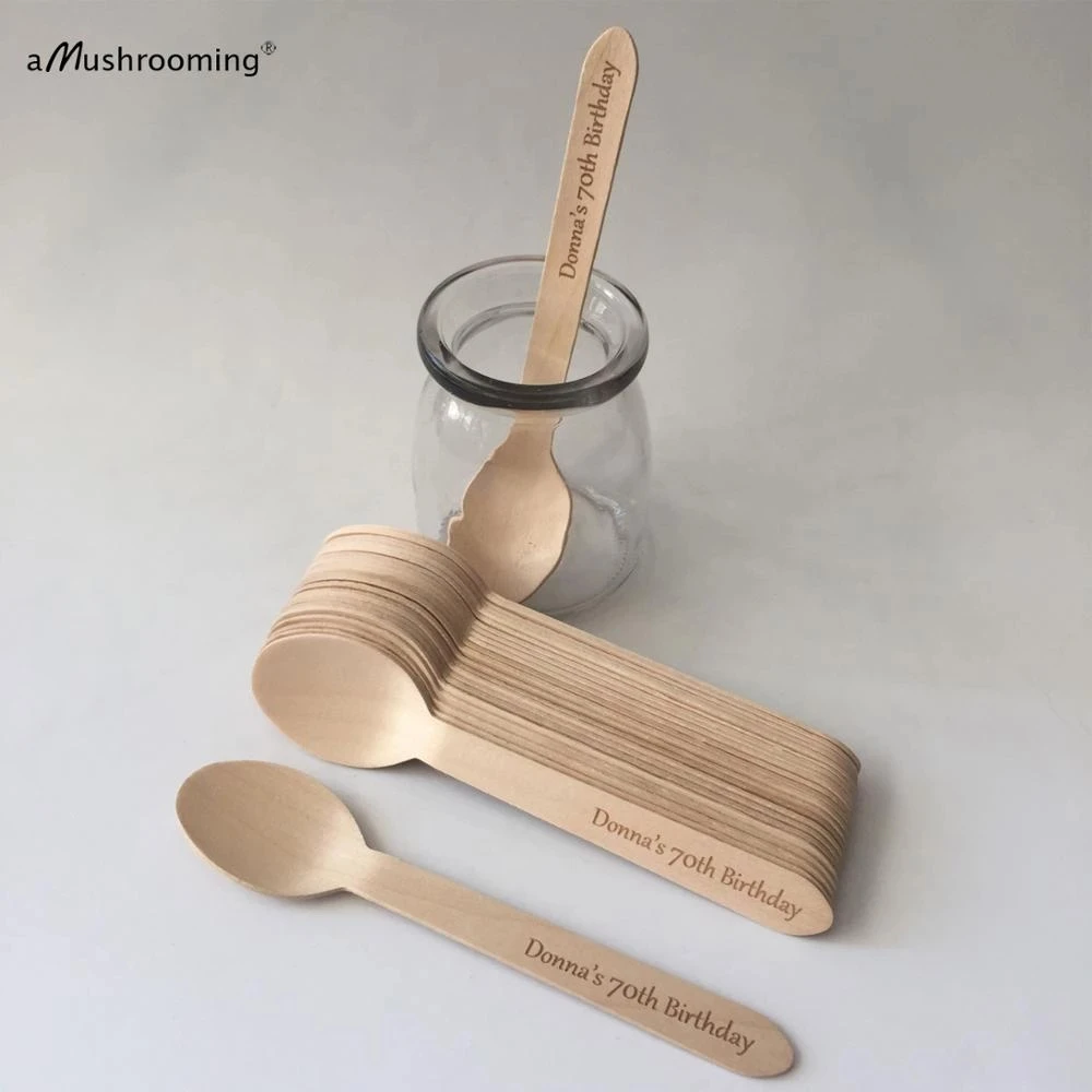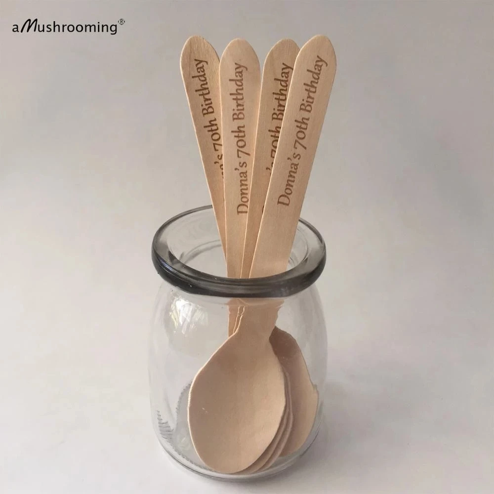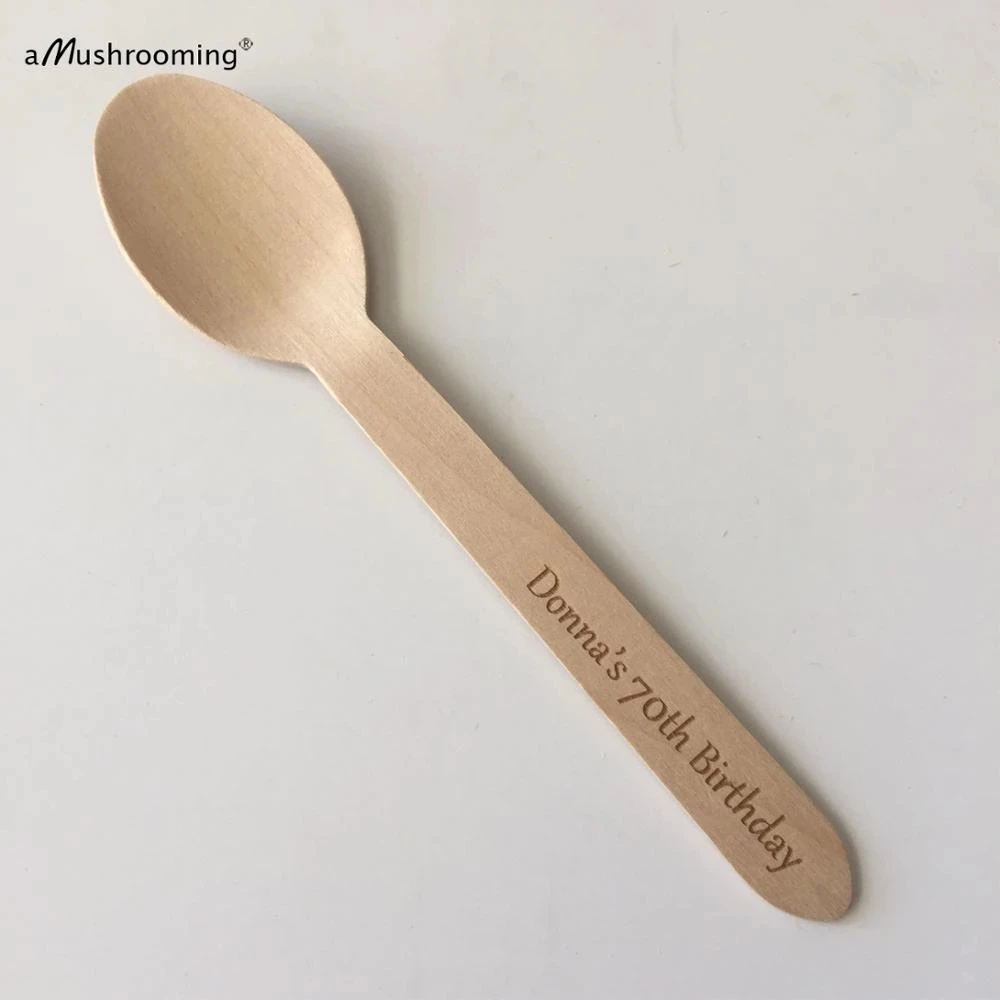 Лазерная Гравировка Персонализированные Одноразовые деревянные ложки