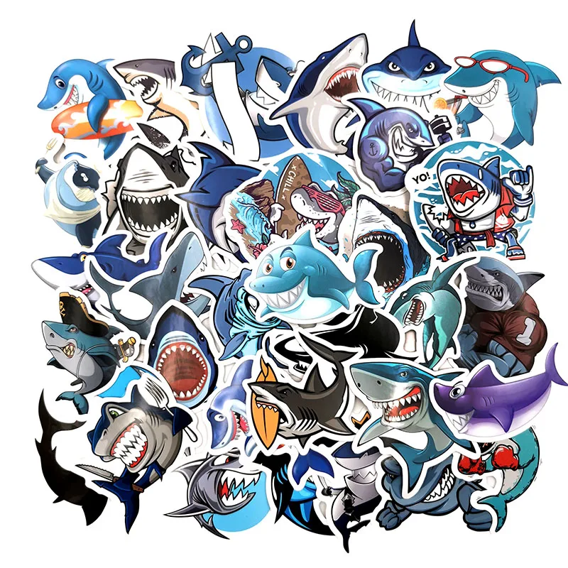 Наклейки водонепроницаемые, 103050шт.пакет, с изображением акулы, д...
