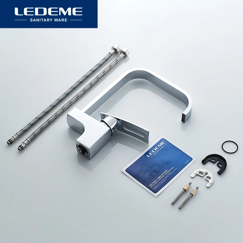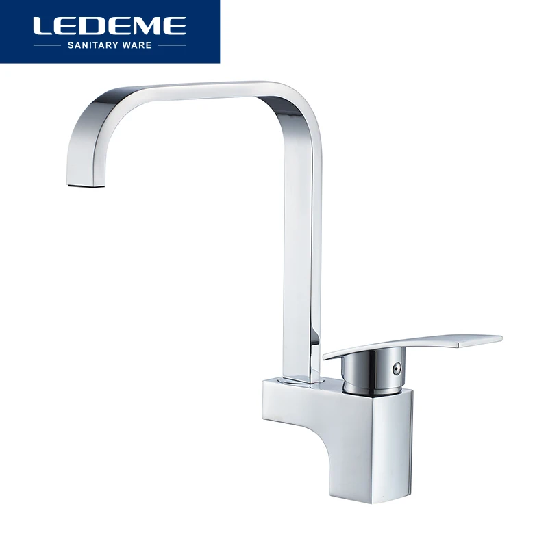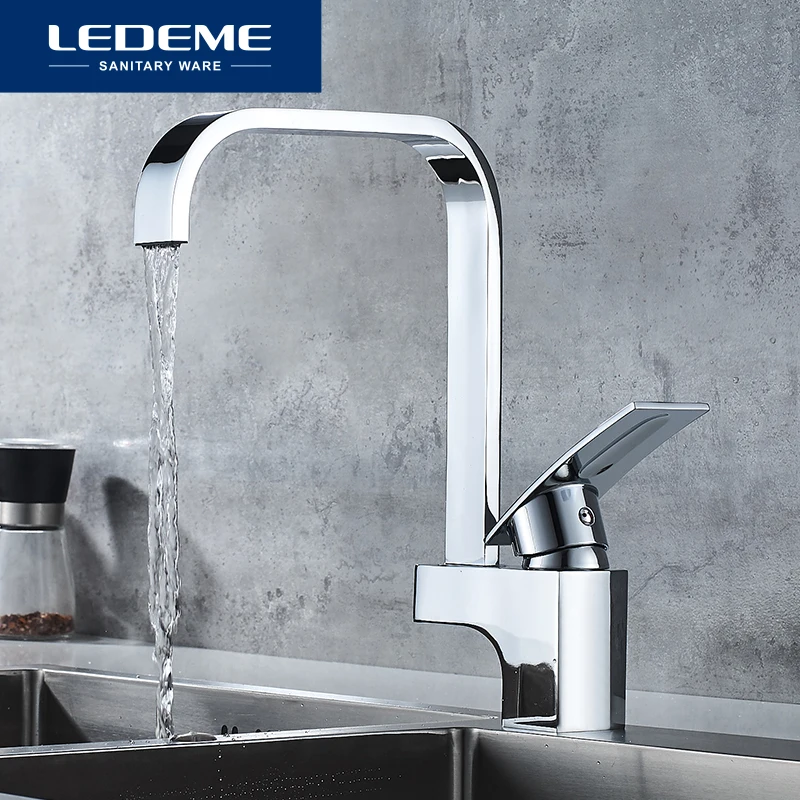 Смеситель для кухни LEDEME, хромированный кран для горячей и холодной воды, квадратный Водопад, L4070