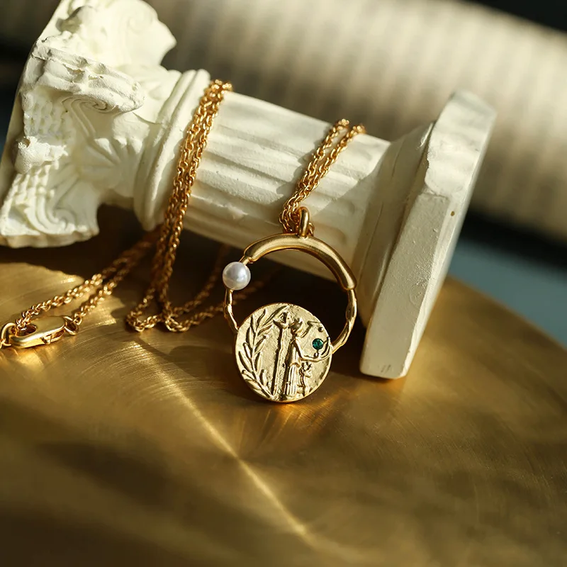 Медная бумага с золотым покрытием оливкового листа ожерелье из золотых монет серьги Zeus монета с портретом жемчужные серьги с цепочкой