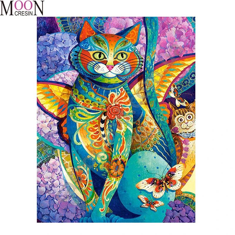Алмазная вышивка Стразы сделай сам, мозаика с изображением цветных кошек и животных, полная вышивка крестиком, квадратная и круглая живопись