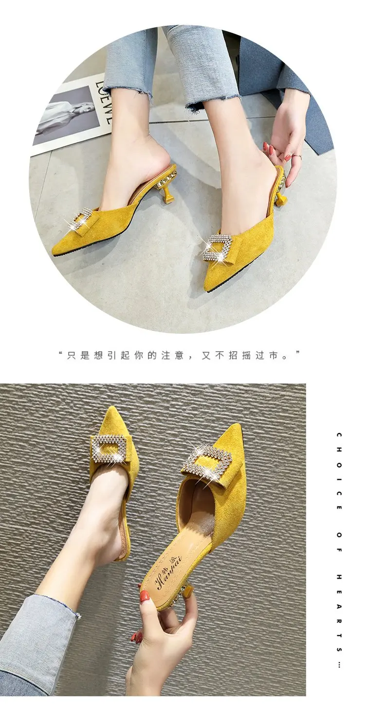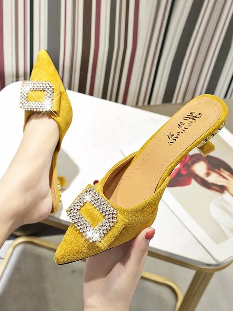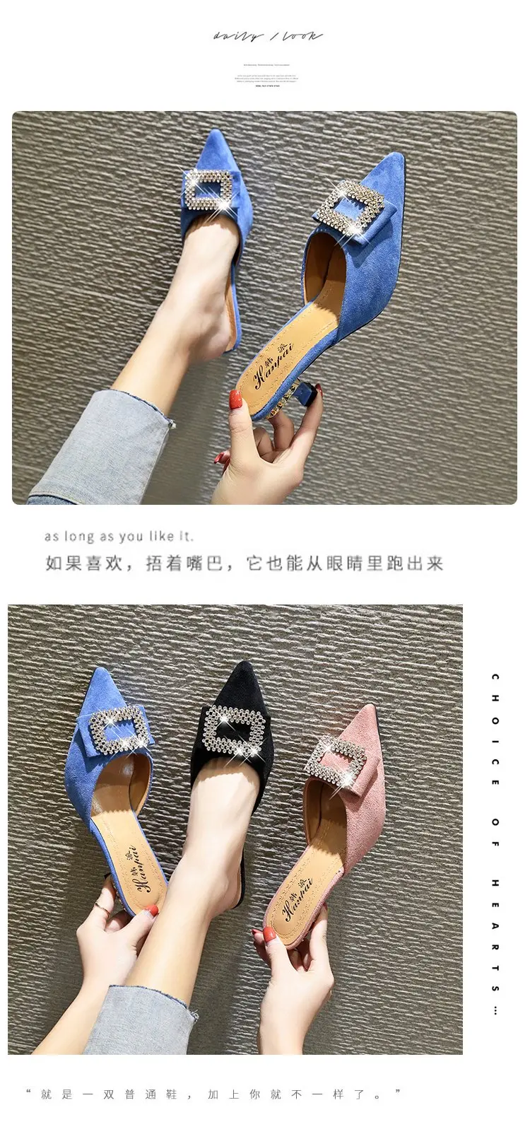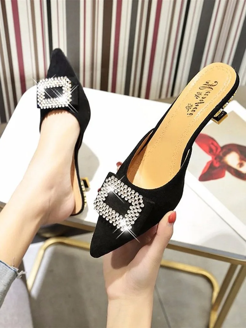 Шлепанцы женские Стразы с квадратной пряжкой, летние, 2020