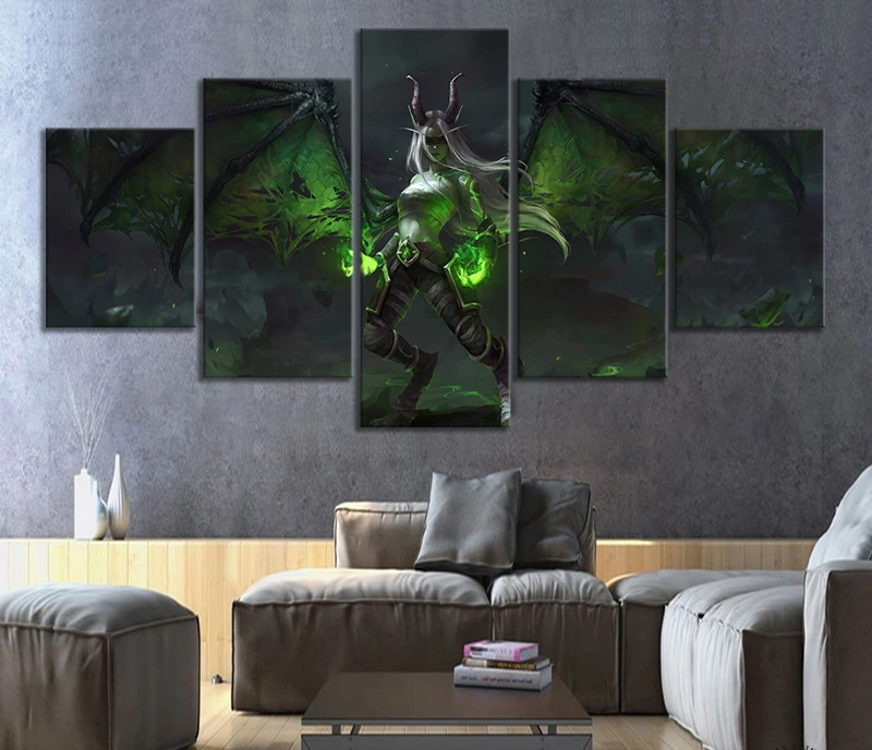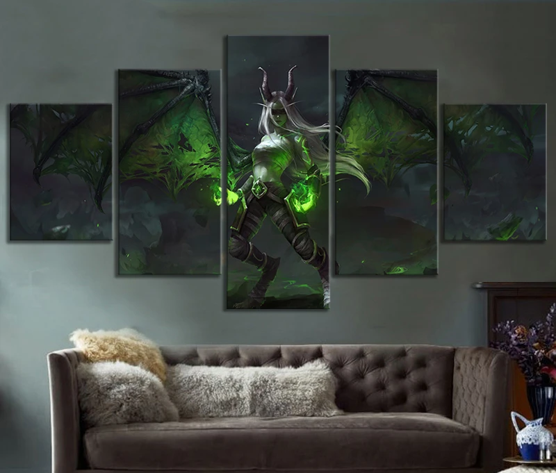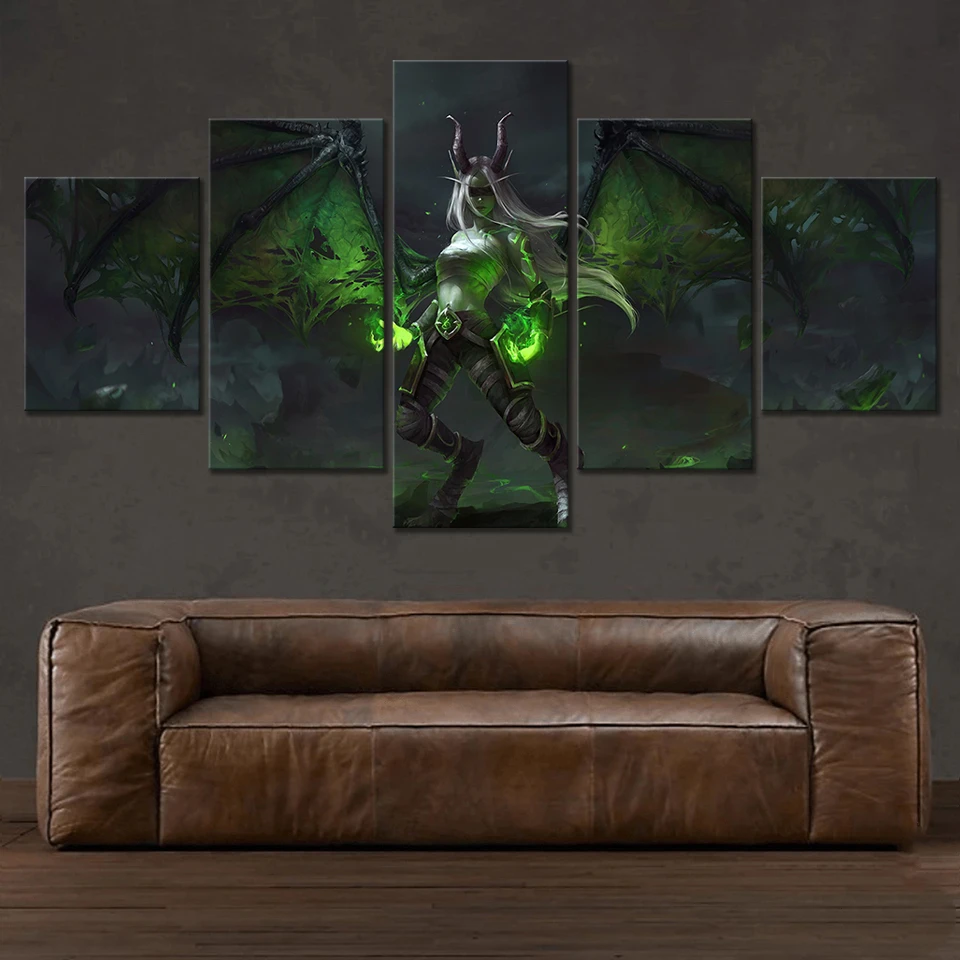Модульный холст для домашнего декора, картина 5 шт., охотник на демона, Illidari, видео игра, постер, Картина на холсте, оптовая продажа
