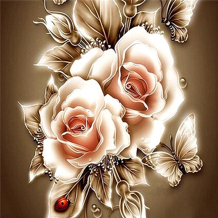 Алмазная живопись, узор розовая роза, декоративная картина, стразы,...