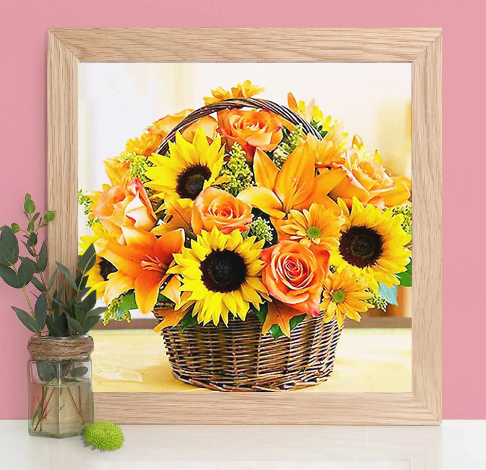 5D DIY камни в форме ромбакруглый алмазное Рисование Подсолнечник ч...