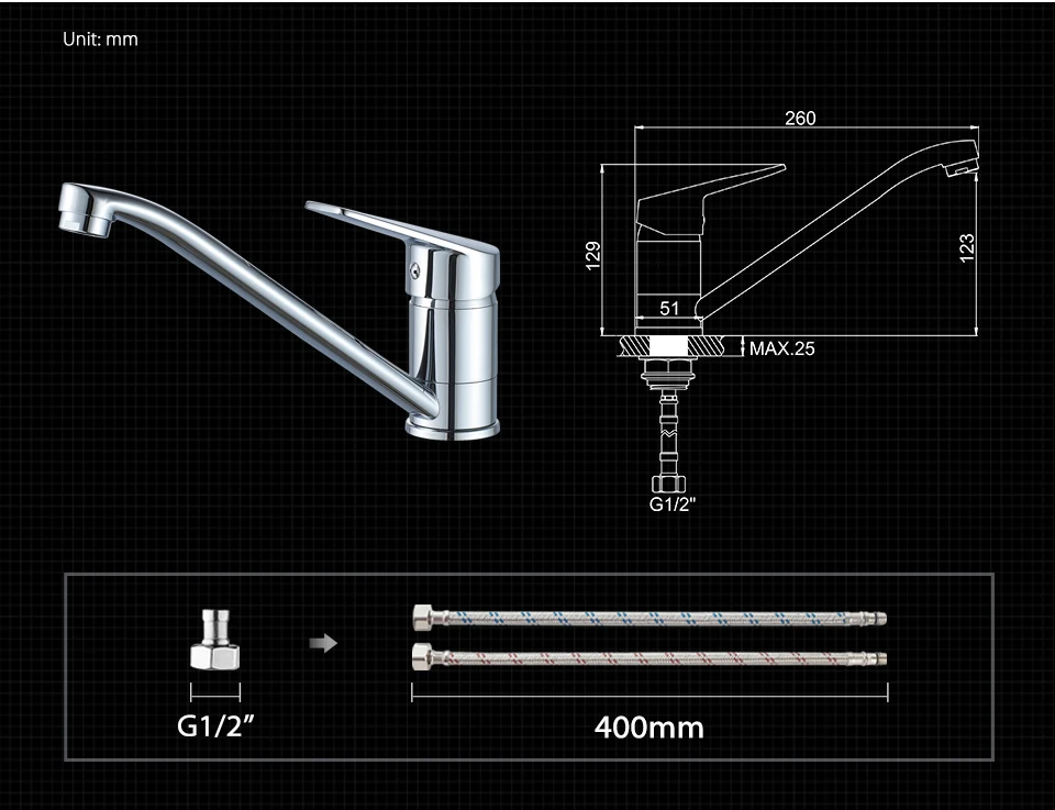 Смеситель для кухни LEDEME L4940, однорычажный хромированный кран на раковину, для горячей и холодной воды