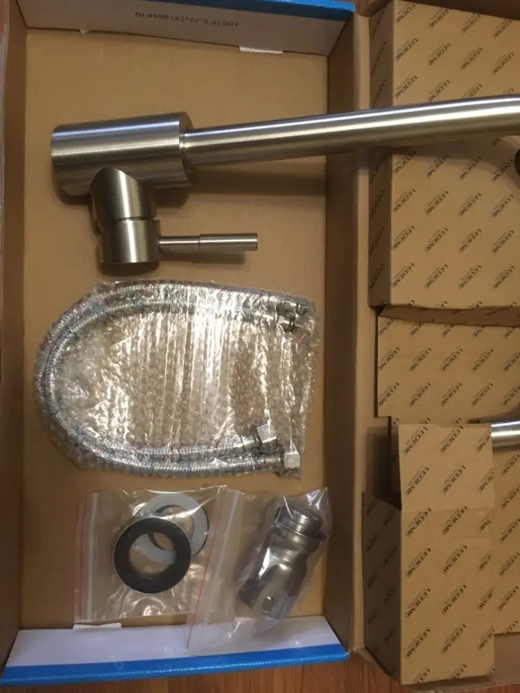 Смеситель отличный! Доставка быстрая. Но есть один недостаток связанный с подводкой, она не стандартизиирована под этот смеситель. Штуцера короткие, посадка глубокая и к шлицам под ключ #11 не подобраться, когда два шланга вместе, уплотнительная резинка одинарная и попадает на резьбу, есть риск, что будет протечка. Так что рассчитывайте на покупку одного шланга с удлиненным штуцером и двойной уплотнительной резинкой. Продаван молчит, на проблему не отвечает. Фото прилагаются. Слева шланги из комплекта, справа мои. Спор не стал открывать, так как кран был со скидкой.