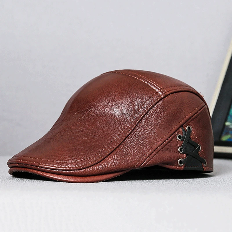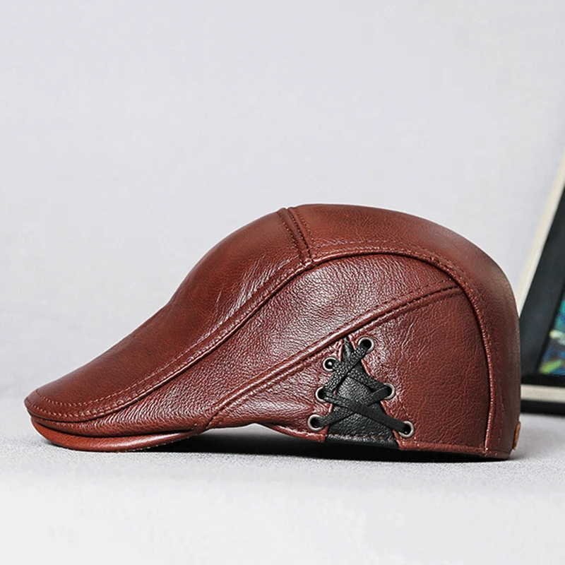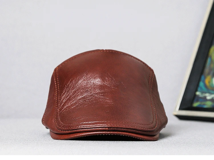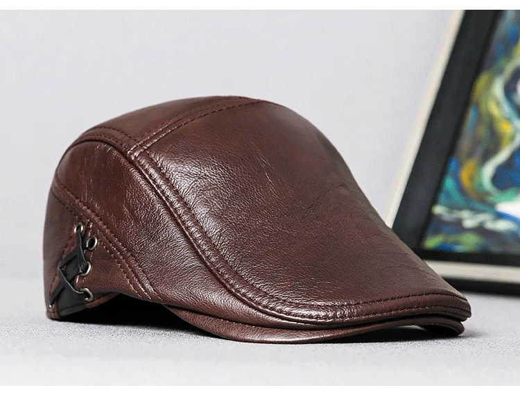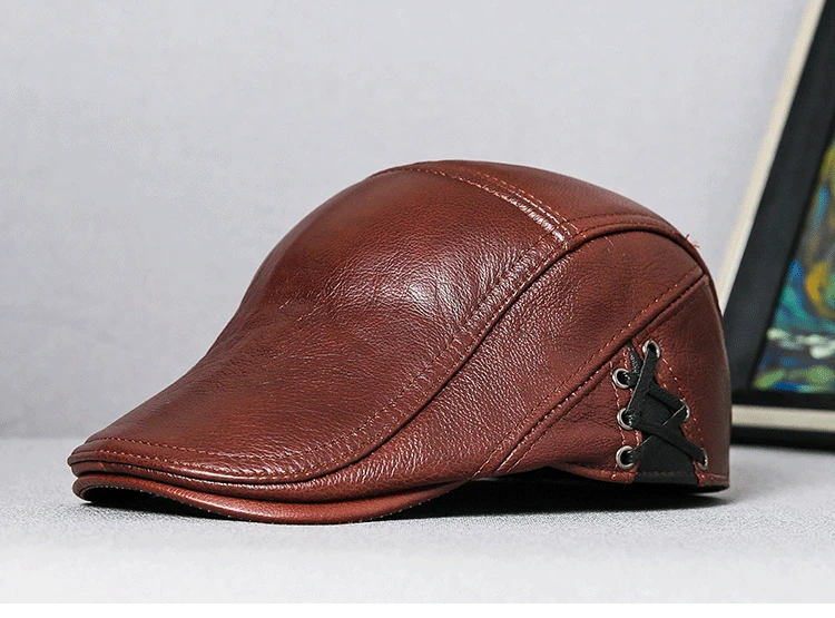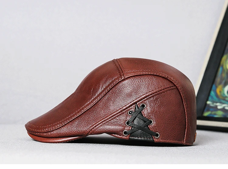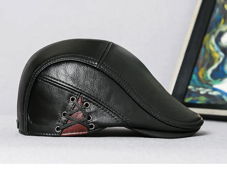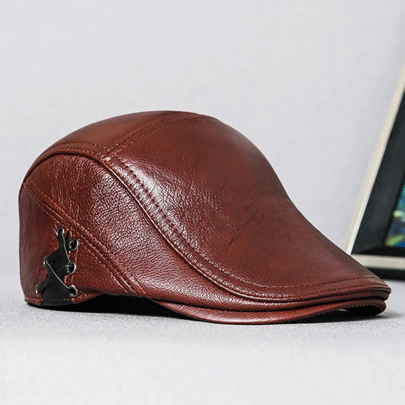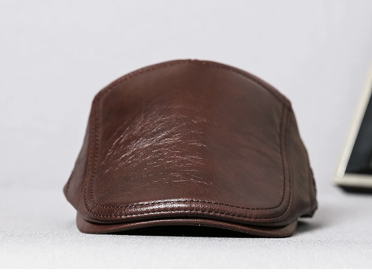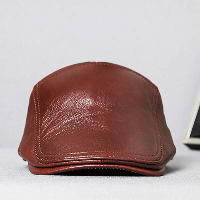 Мужские береты из натуральной кожи, зимние, Осенние, новые, мужские, из воловьей кожи, кепки, модные, бинты, Кепка на плоской подошве для мужчин