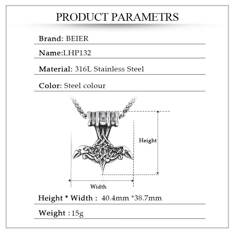 Мужской кулон BEIER, из нержавеющей стали 316L, в скандинавском сти...