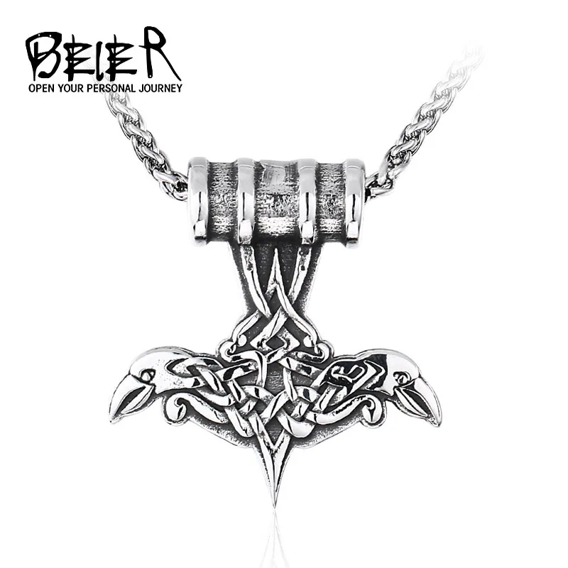 Байер 316L нержавеющая сталь Nordic Молот викинга мужское ожерелье с кулоном голова птицы один амулет ювелирные изделия LLLHP132P