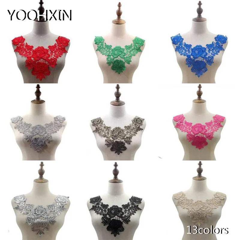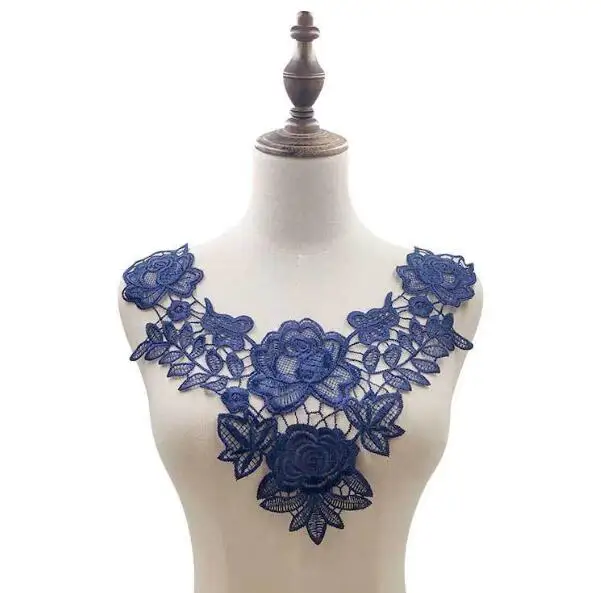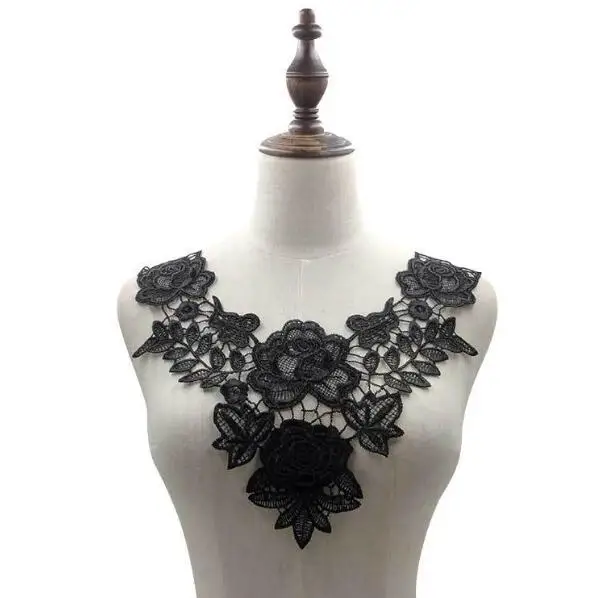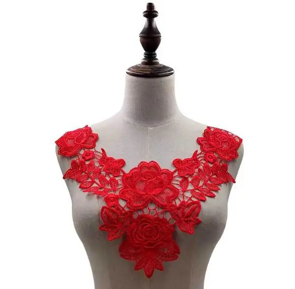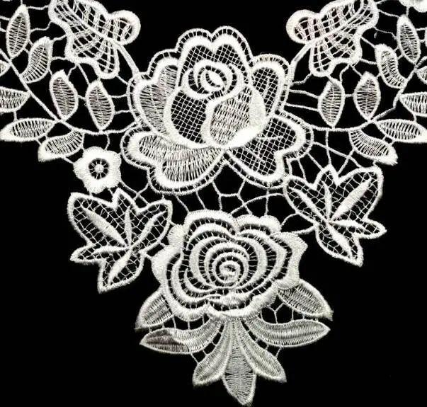 Новая роза вышивка цветок кружевной воротник тканевый шитье Аппликация DIY гипюровая Лента отделка декольте патчи свадебное платье ткань Декор