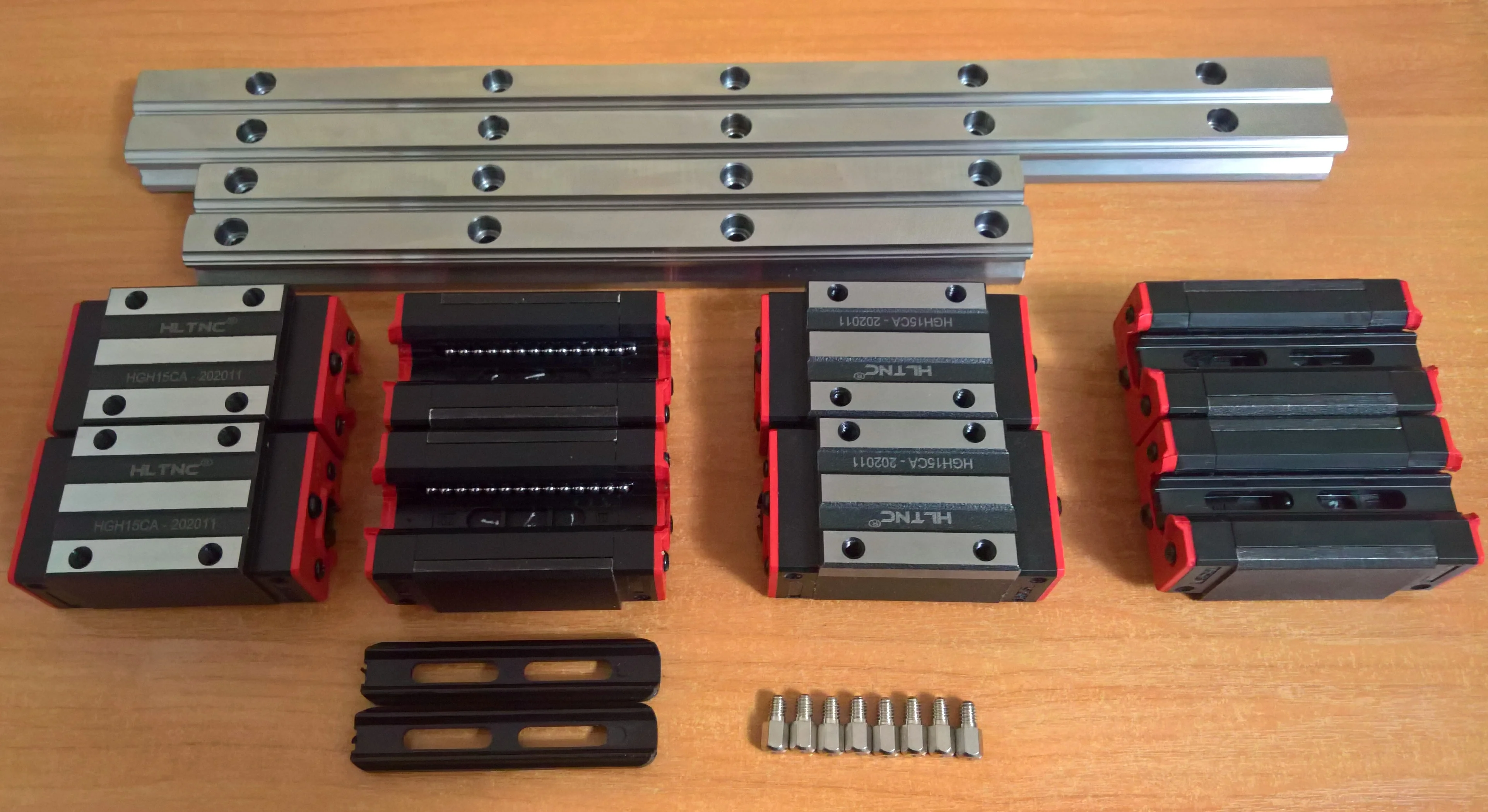 Каретки очень тяжелые - около килограмма или больше каждая (hgr20). Покупал для перевода Annet e12 на рельсовый стол. От идеи пока отказался так как ремень не потянет стол, придется делать винтовой вал. К товару претензий нет