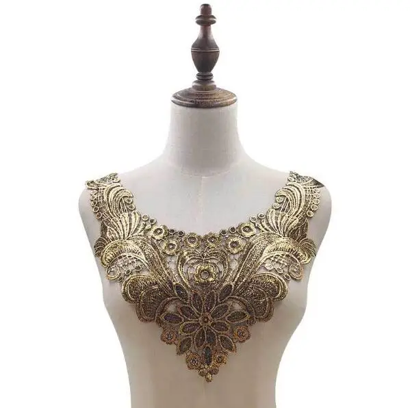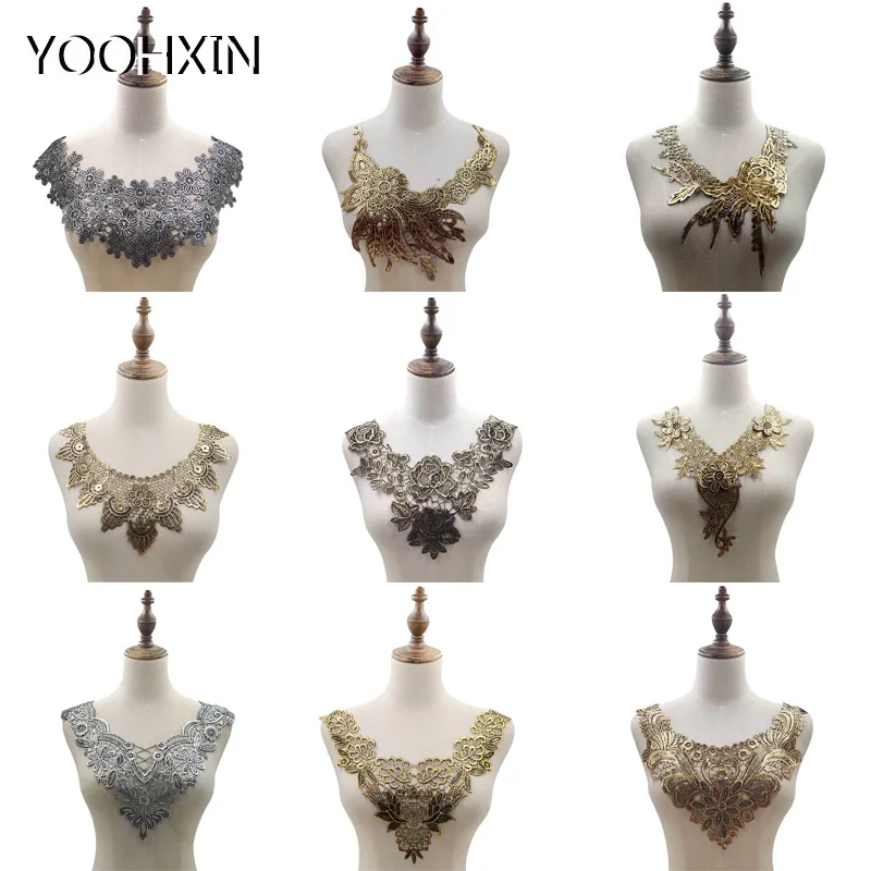 Новинка, Серебряная Золотая вышивка, цветок кружевной воротник тканевый, аппликация для шитья, лента для отделки декольте, заплатки для рукоделия, декор для свадебного платья