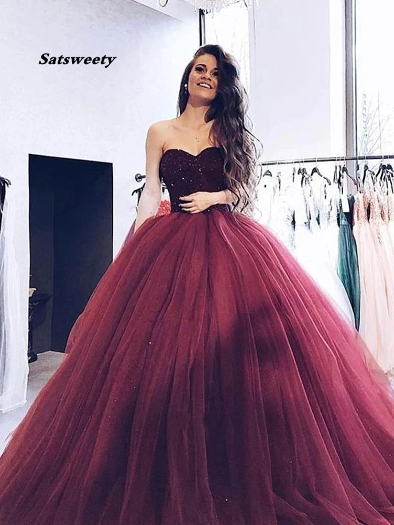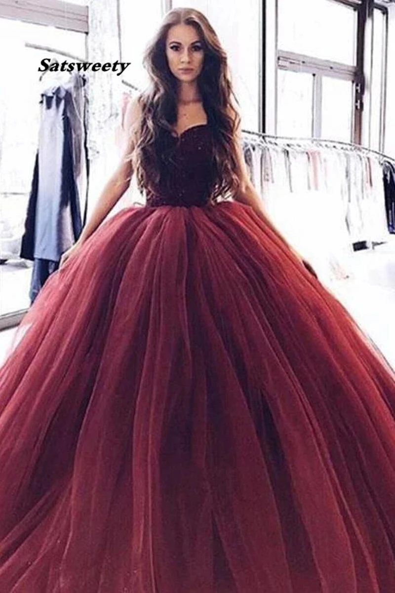 2022 бордовое бальное платье Тюль без бретелек, милое платье для выпускного вечера, платья Quinceanera