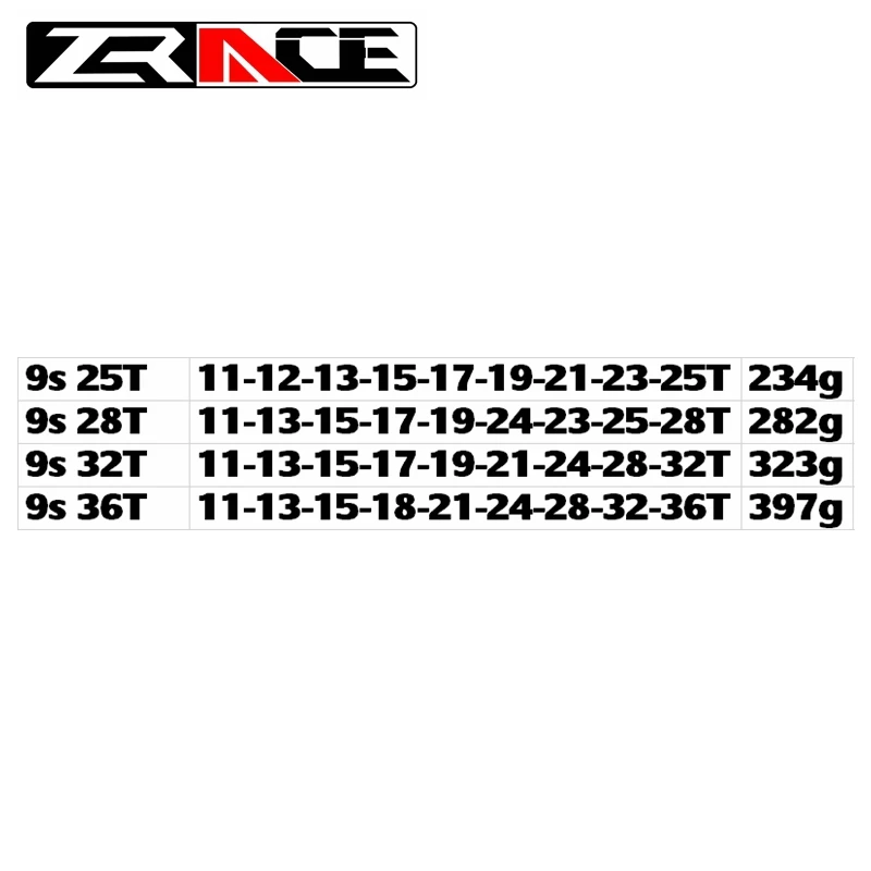 Велосипедная кассета ZRACE, 9 скоростей, 11-25T 28T 32T 34T 36T...