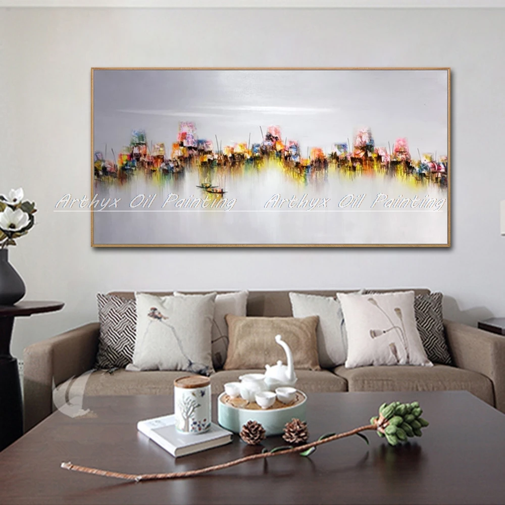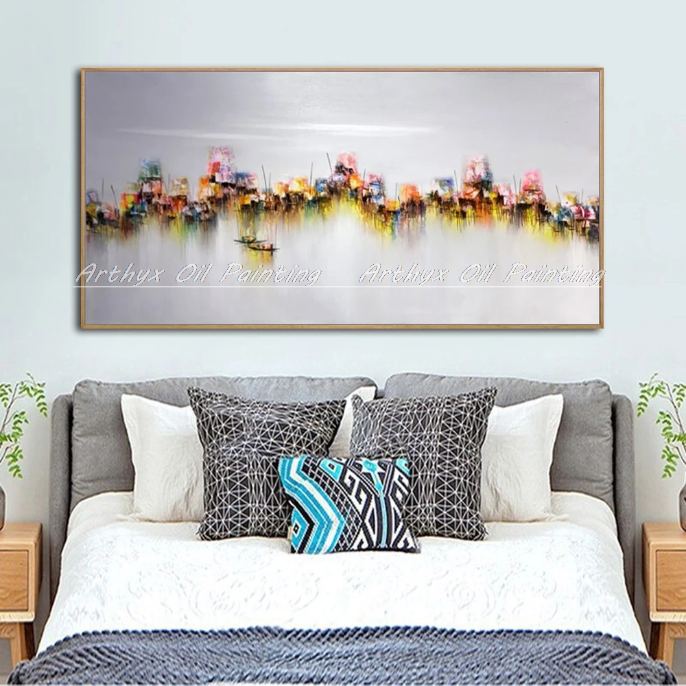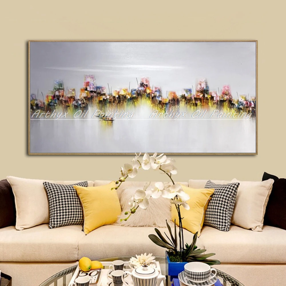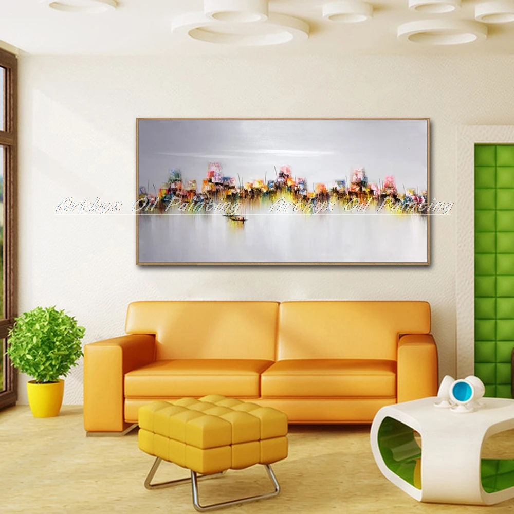 Описание товара:Arthyx большой размер Ручная роспись рыбацкие лодки Пейзаж Масляные картины абстрактный Холст Искусство Настенная картина для гостиной домашний декор.