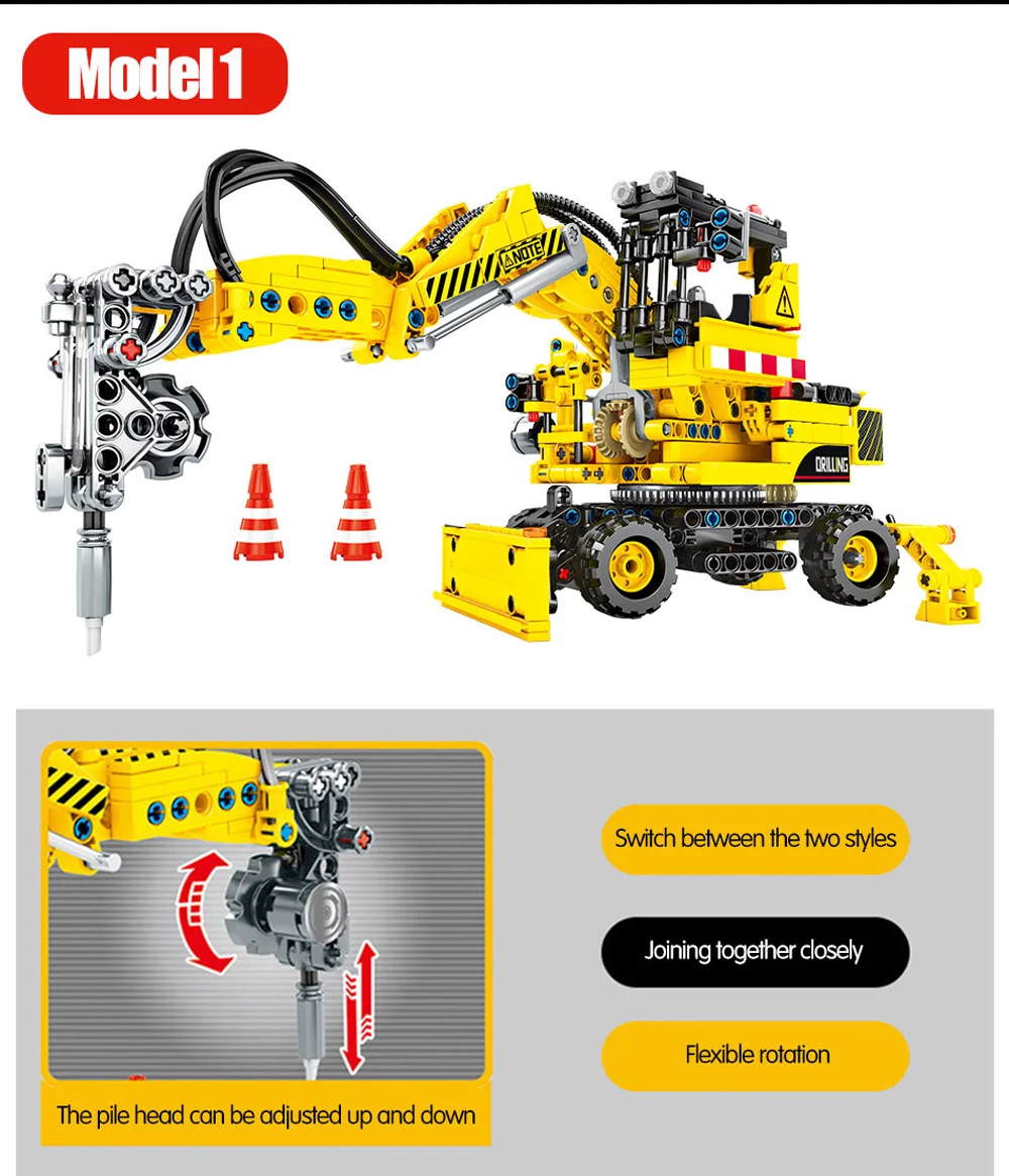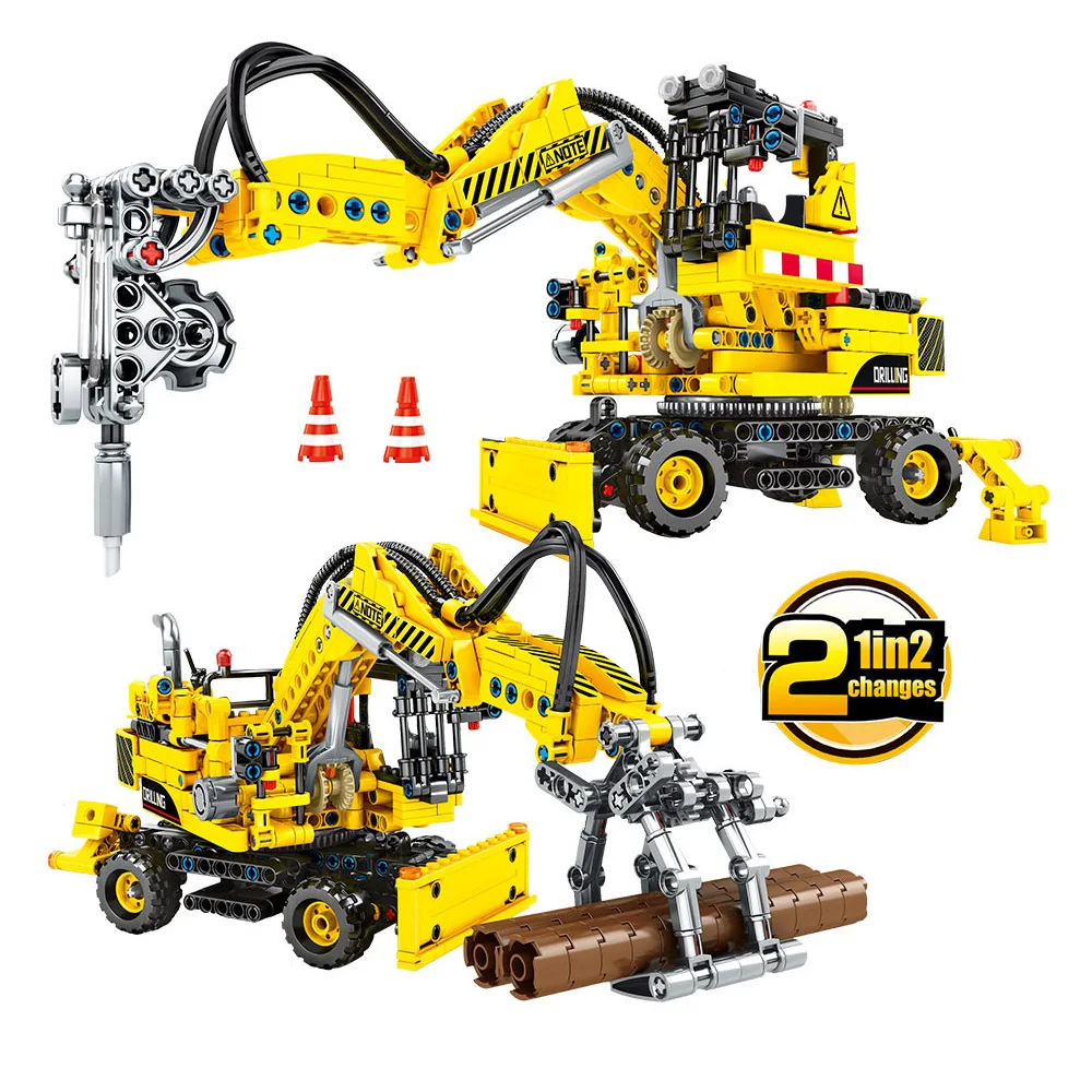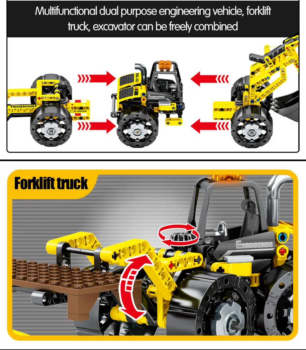 Конструктор строительный инженерный, мешалка для строительных блоков, грузовик, экскаватор, строп, фургон, роликовый вилочный погрузчик, развивающие кирпичи, игрушка, подарок для мальчика