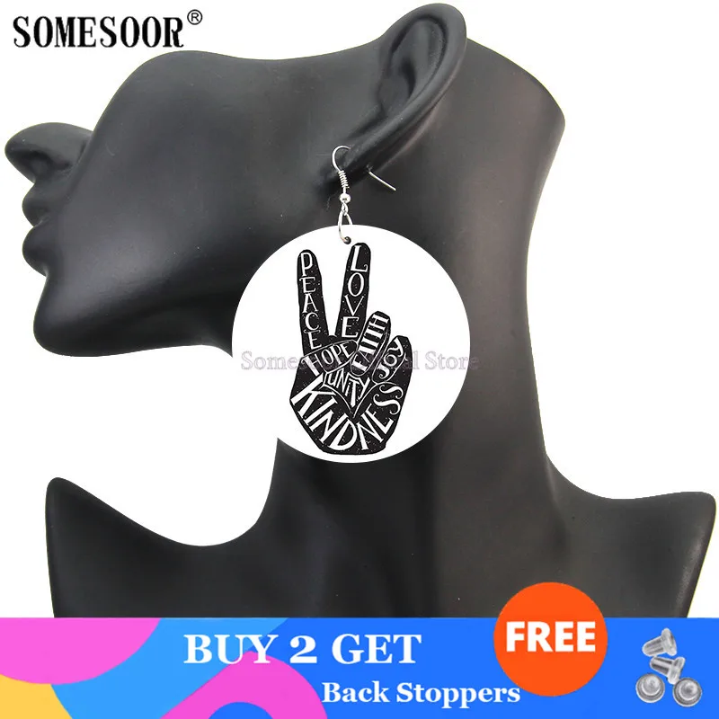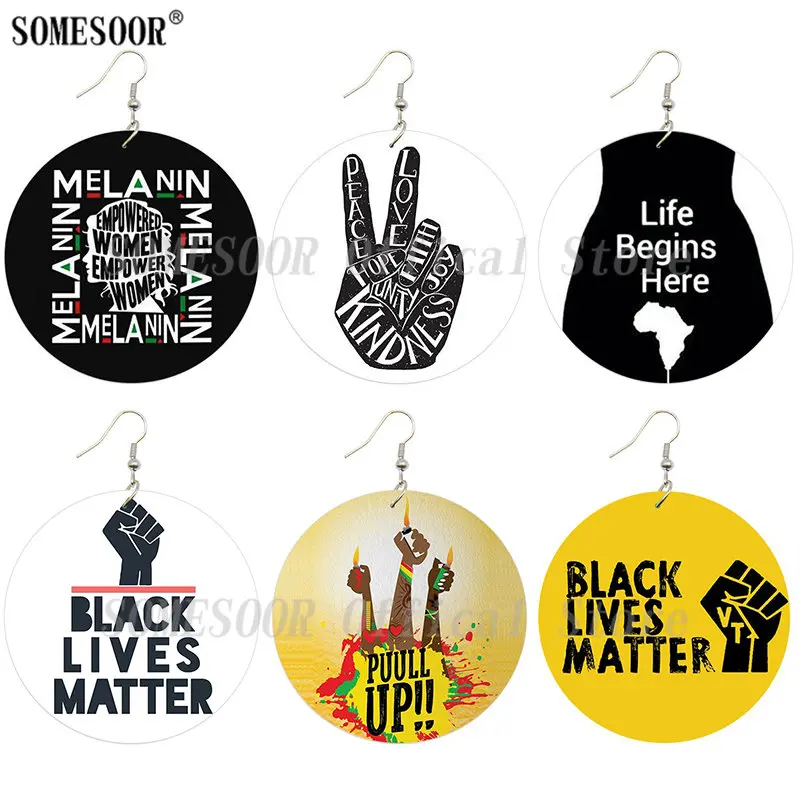 SOMESOOR афро косы поп-арт печатные деревянные висячие серьги черна...