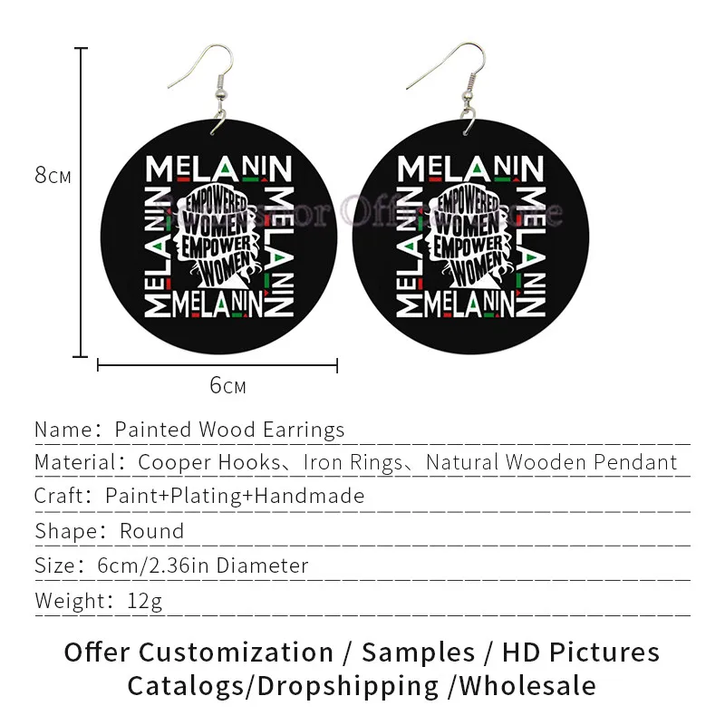 Деревянные серьги-подвески SOMESOOR, с изображением меланина, женск...