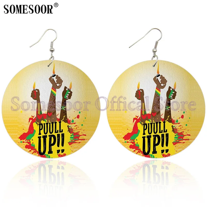 SOMESOOR мои афро корни деревянные висячие серьги с принтом Не прик...