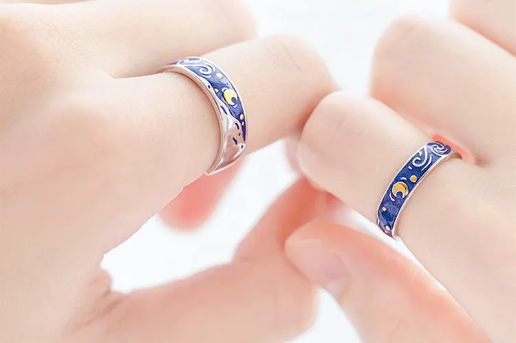 Женское кольцо Foxanry 925, креативное кольцо с изображением звездного неба