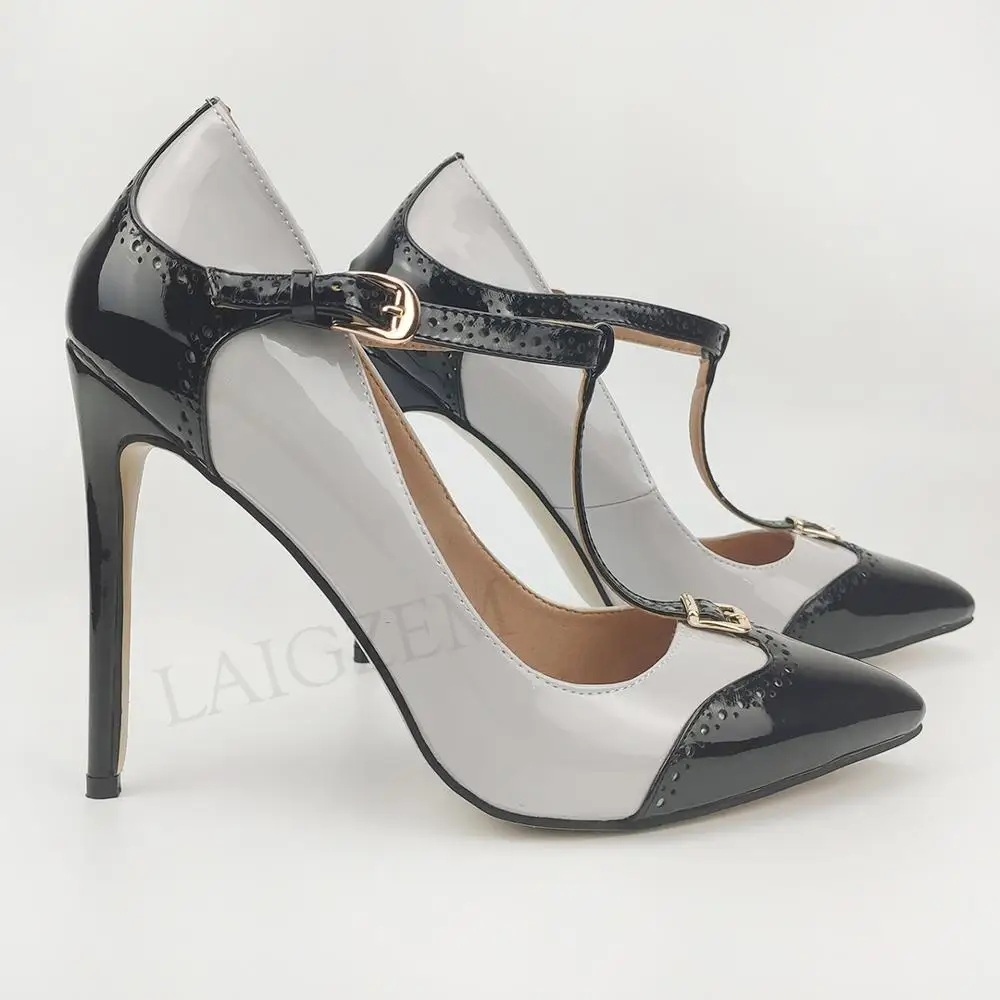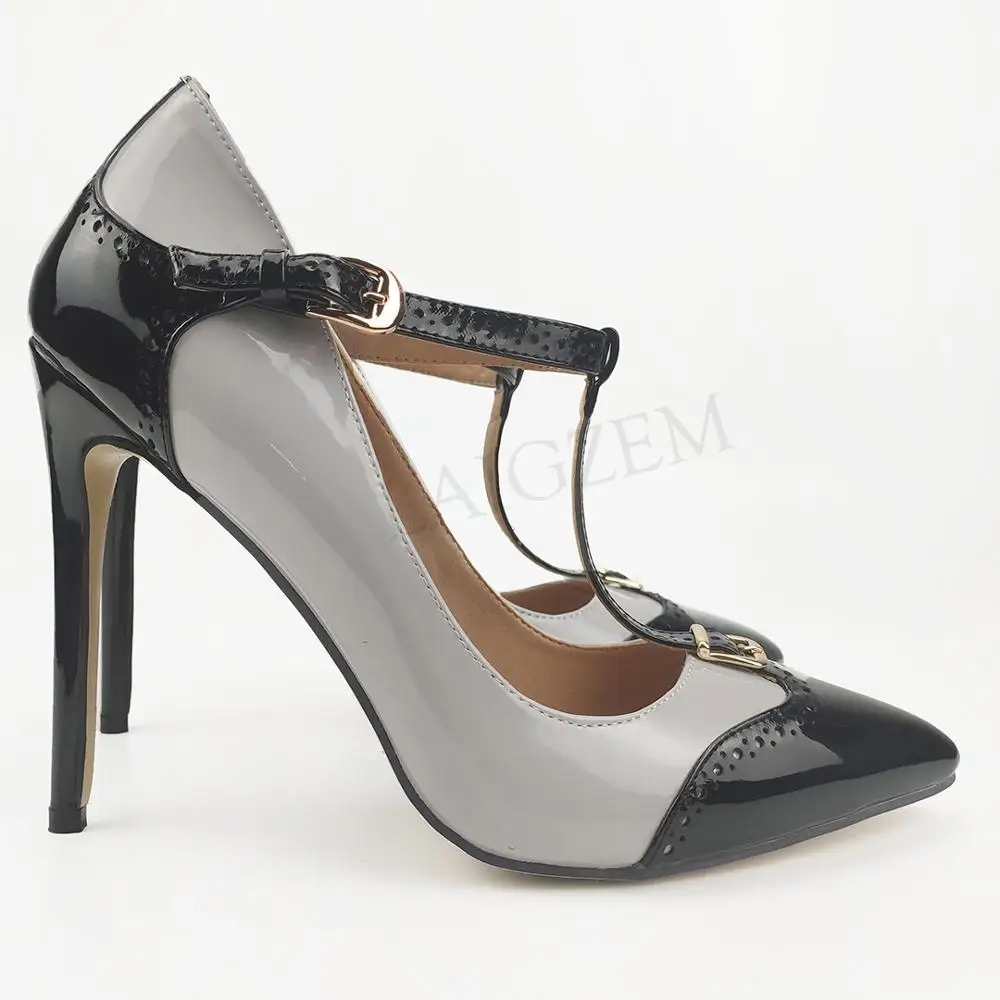 BERZIMER/женские туфли-лодочки на высоком каблуке с Т-образным ремешком и острым носком; Женская обувь для вечеринки и выпускного; Zapatos; Женская обувь; Большие размеры 44, 45, 46, 47