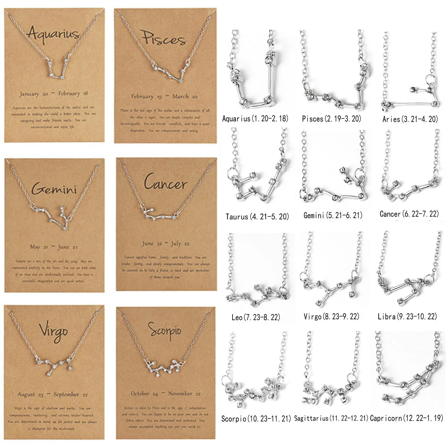 Серебряный цвет 12 созвездий подвеска ожерелья стразы для женщин мо...