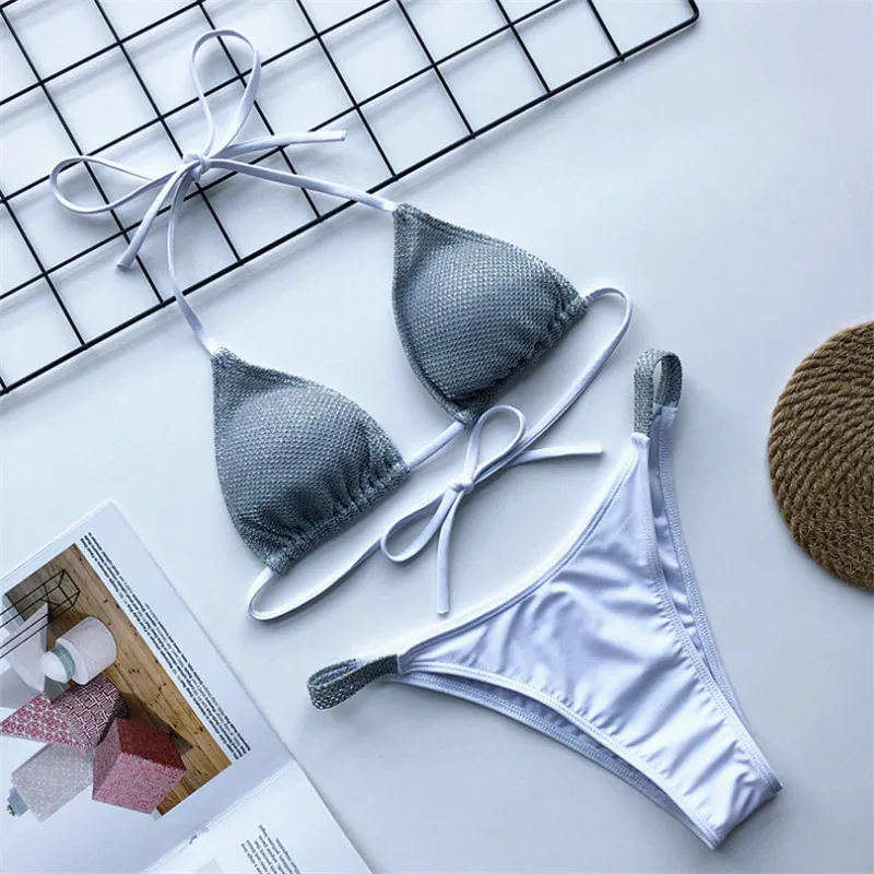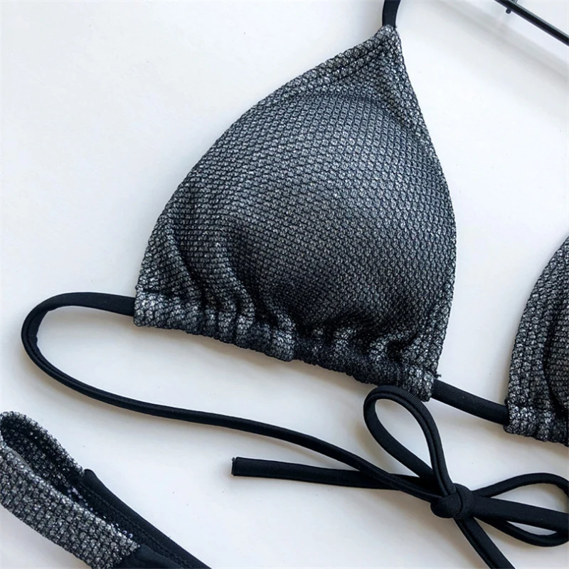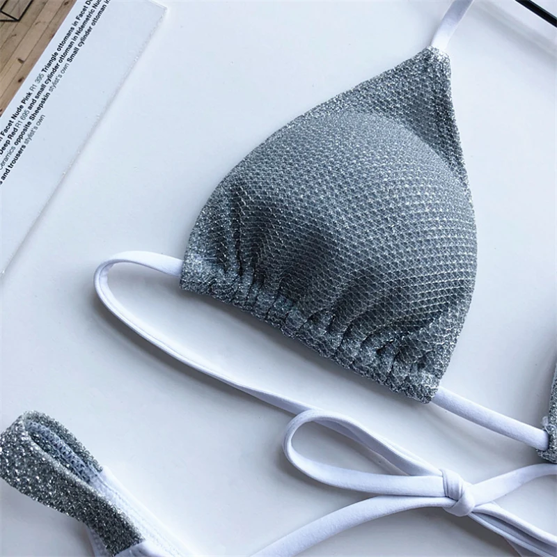 Комплект бикини женский блестящий, пикантный бандажный купальник, б...