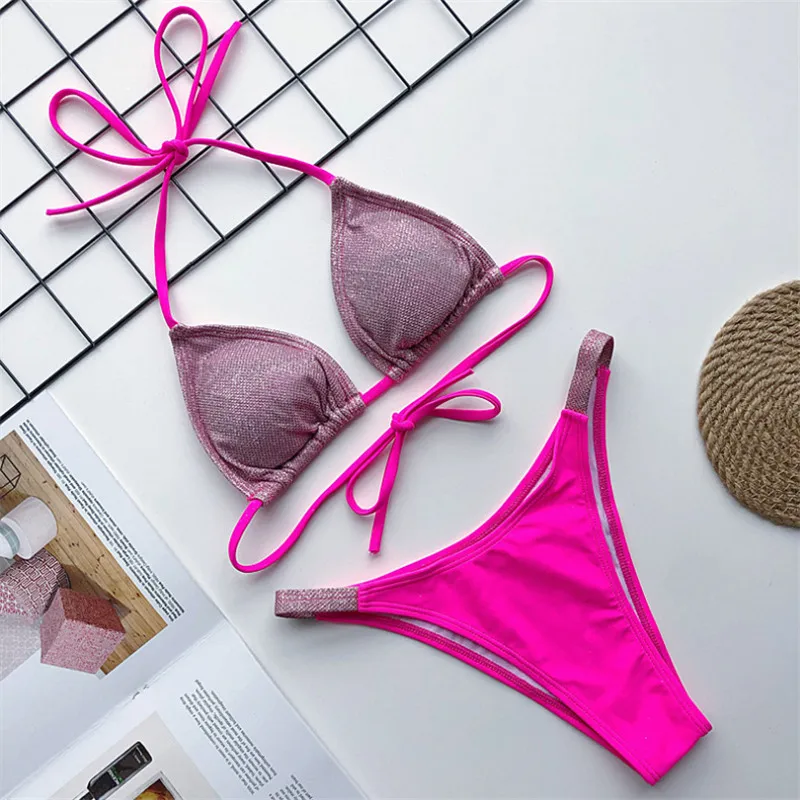 Женский Блестящий купальник из двух предметов, сексуальный купальни...