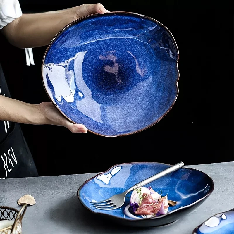 RELMHSYU керамическая темно-синяя Асимметричная тарелка в японском ...