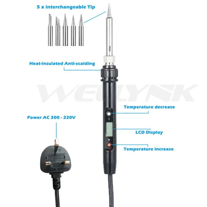 Паяльник Электрический с регулировкой температуры, 80 Вт, ЖК-дисплей