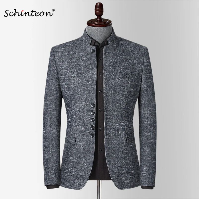 Мужской Блейзер Schinteon в английском стиле, приталенная куртка с воротником-стойкой, Повседневная китайская Туника высокого качества